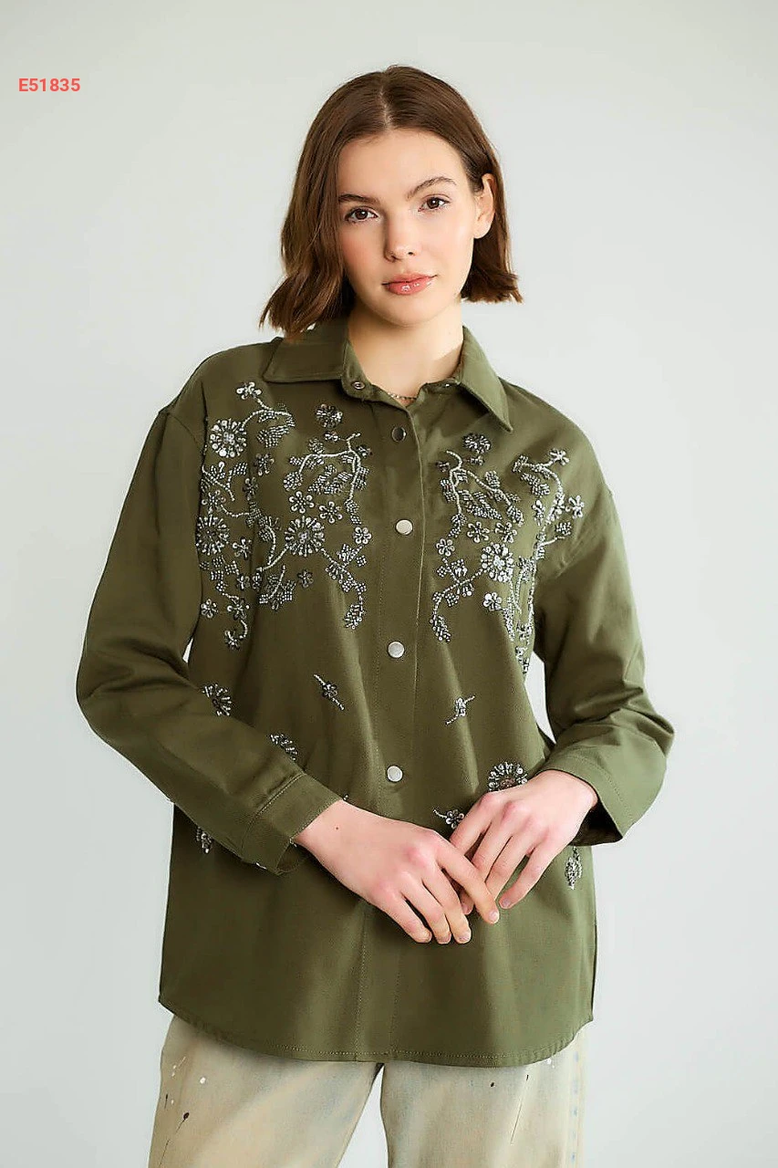 قميص كم طويل مطرز