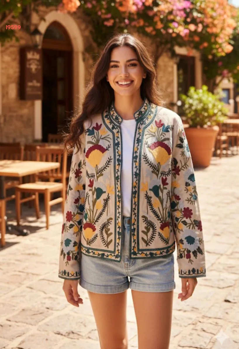 جاكيت قصير فتح مطرز