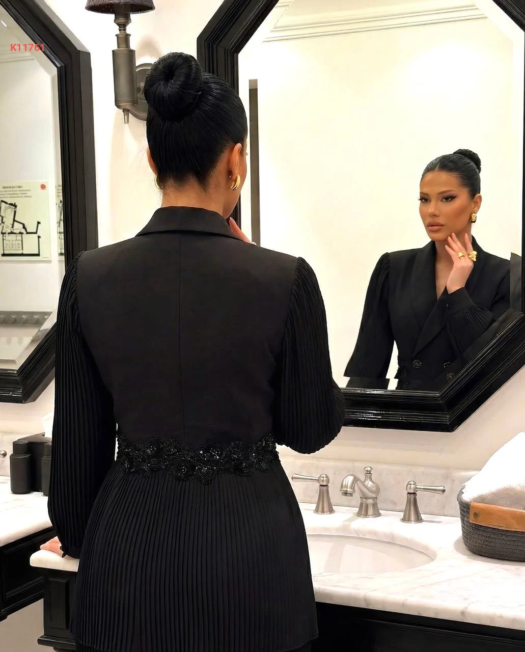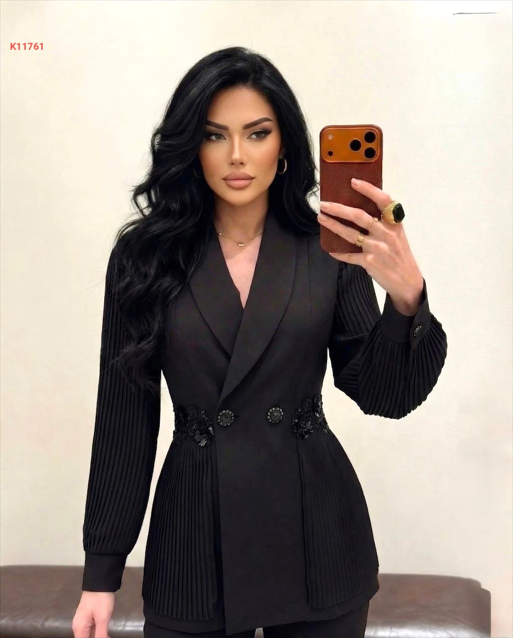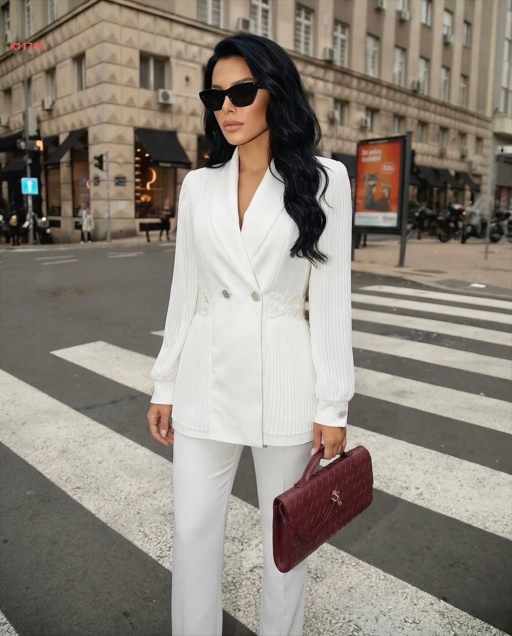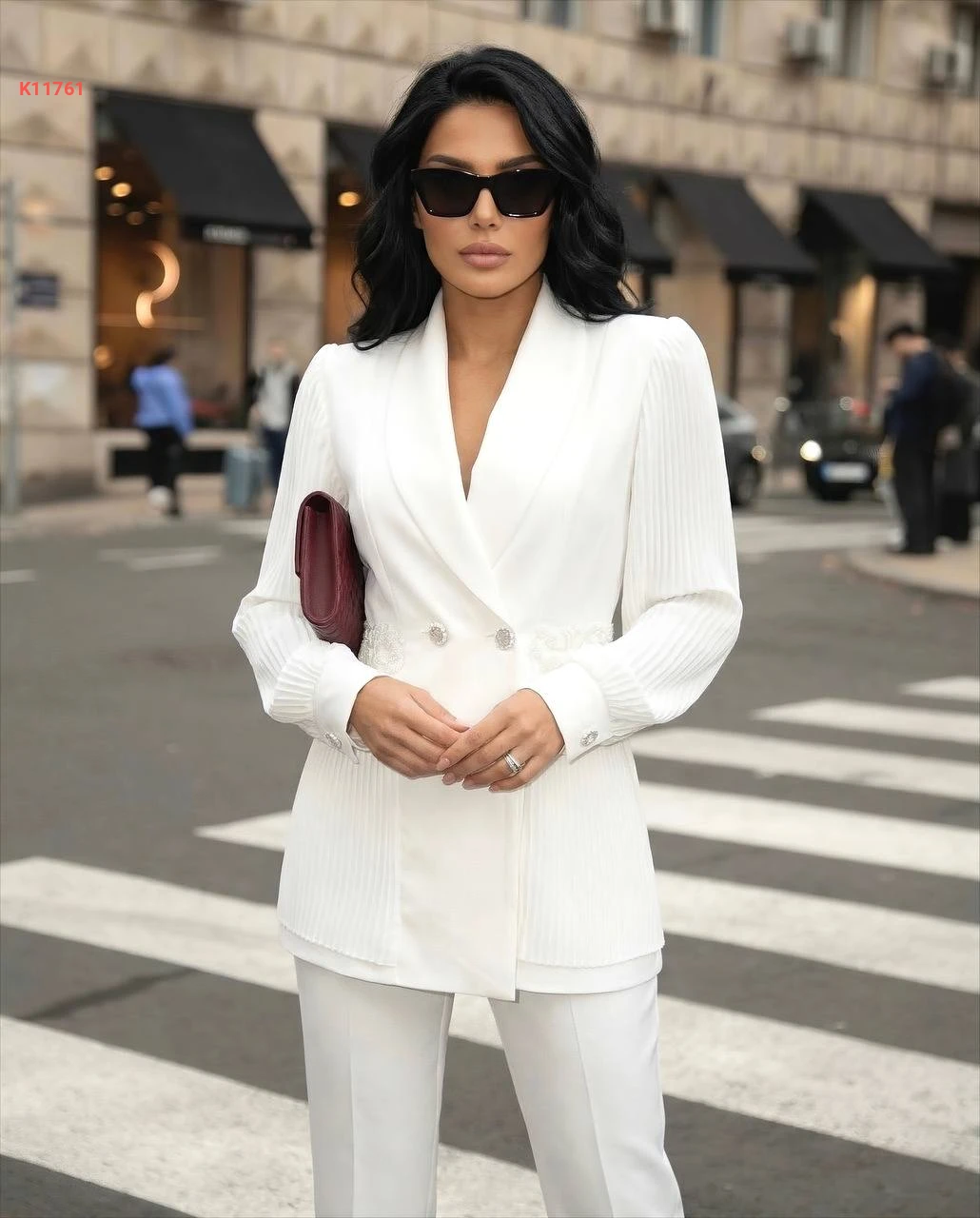 طقم بنطال وبليزر مطرز بأكمام بليسيه