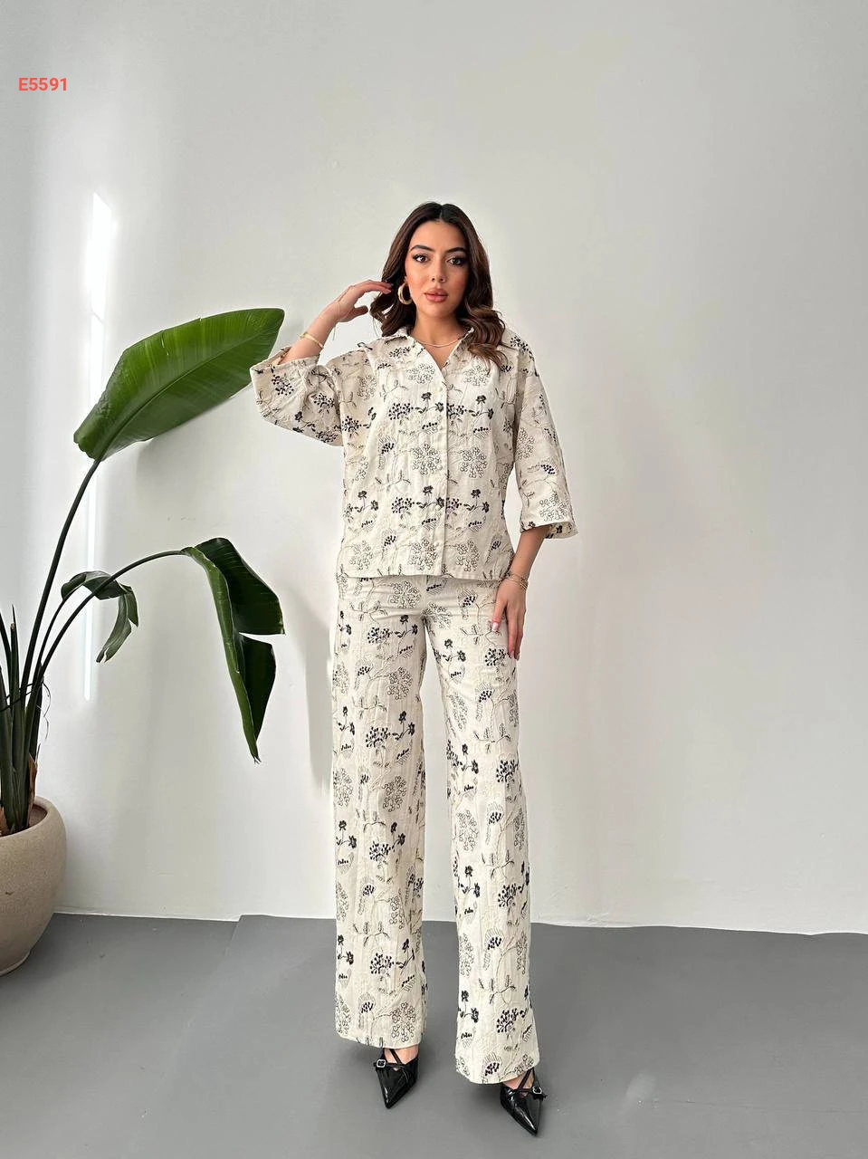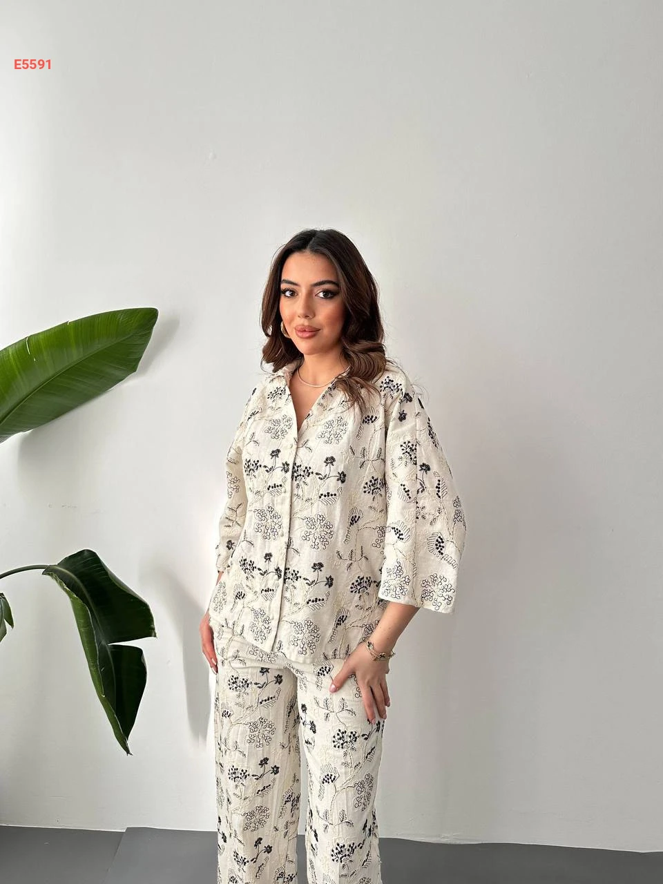 طقم بنطال مطرز مع قميص