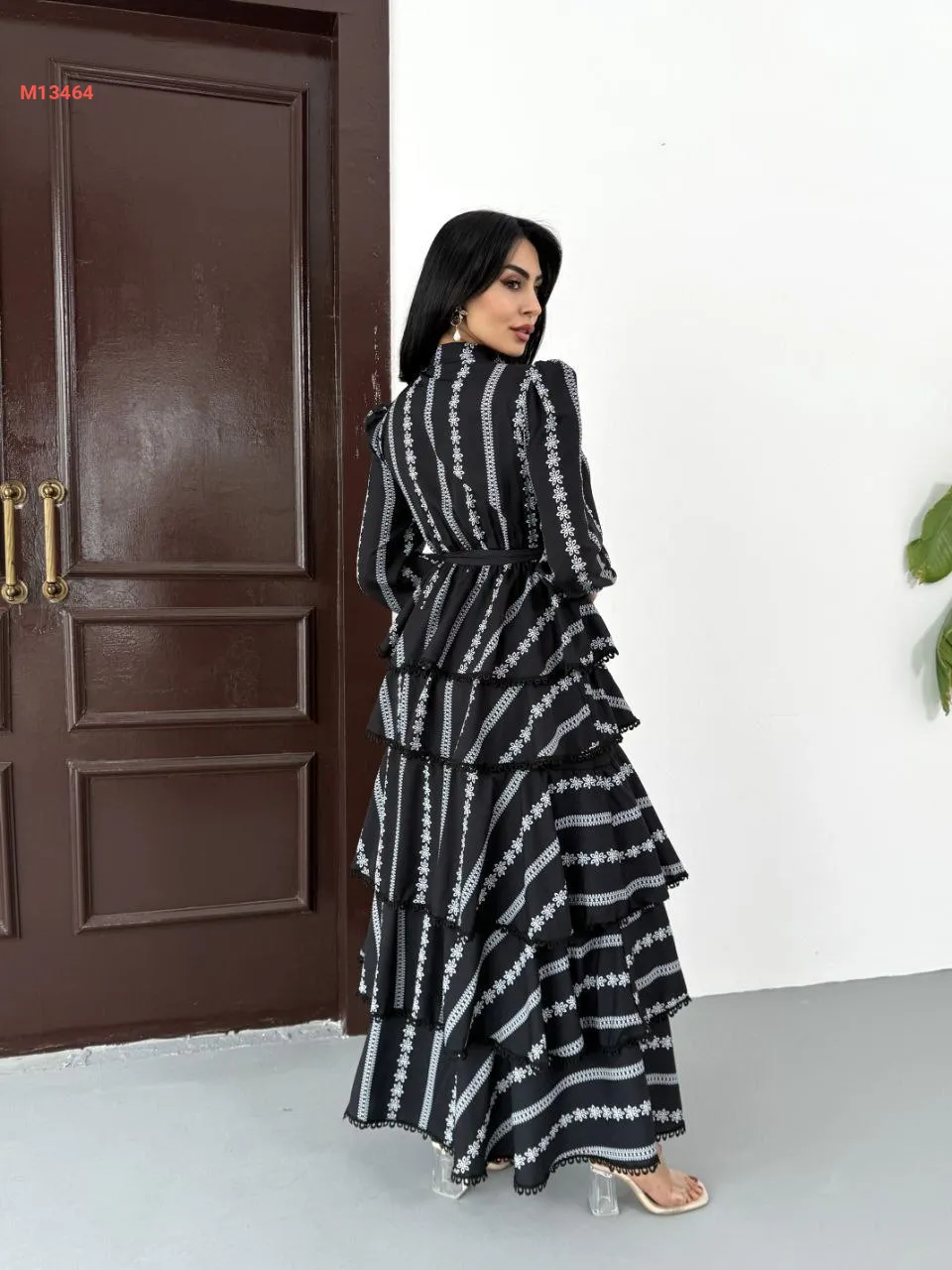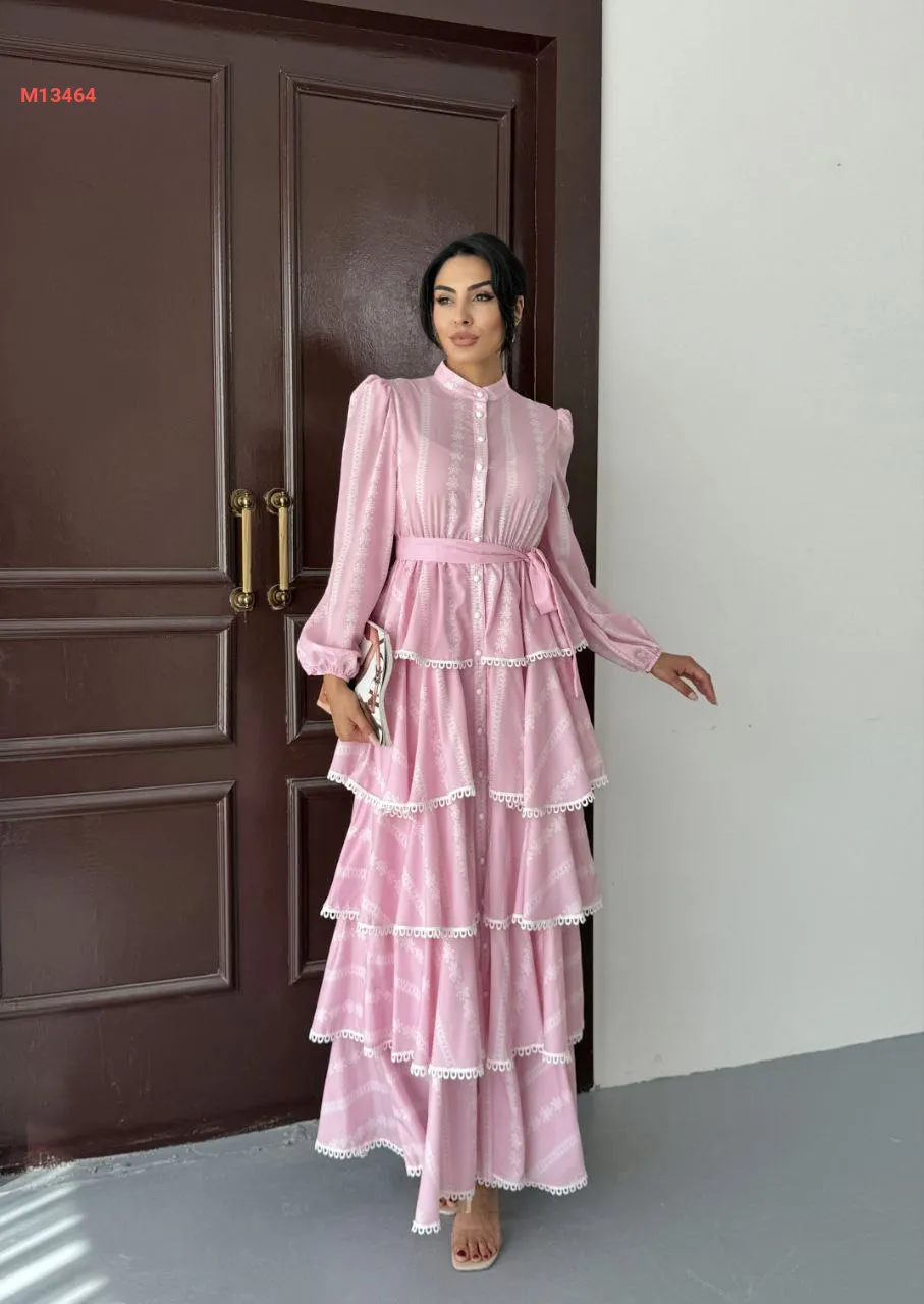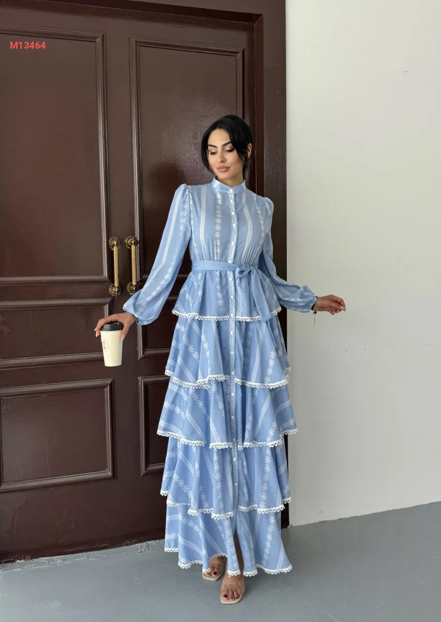 فستان طويل كريب كشكش مطرز