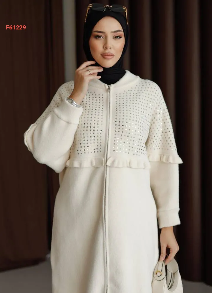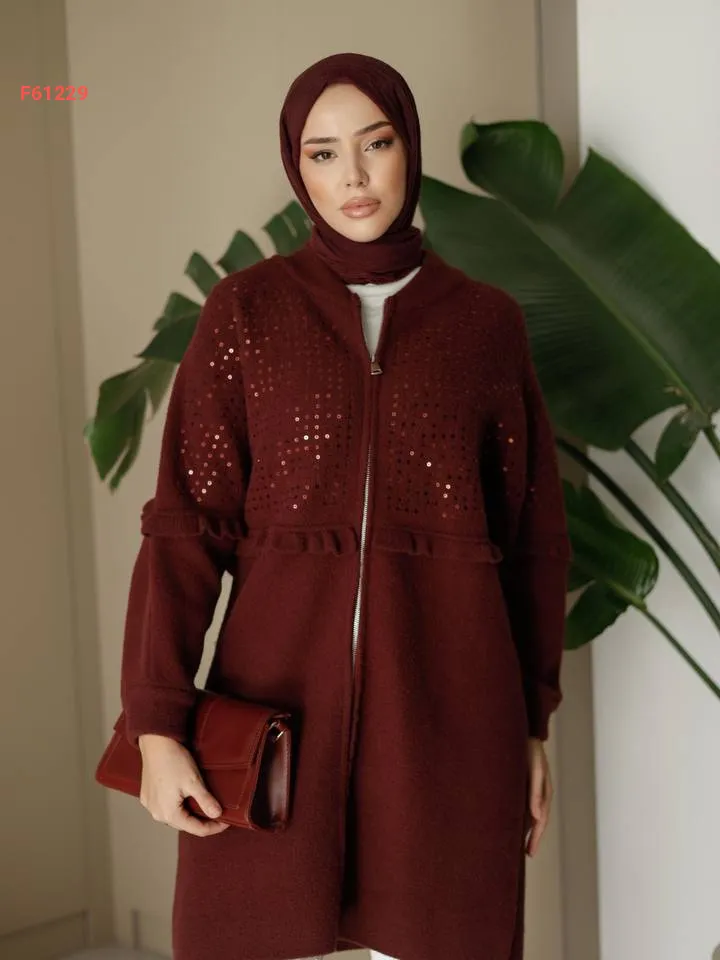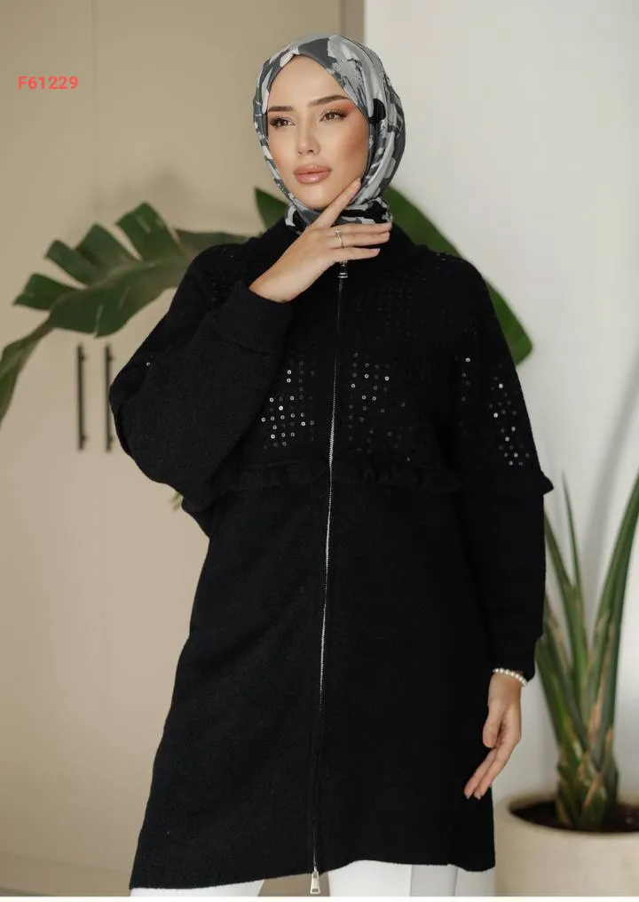 جاكيت تريكو مطرز بالترتر بسحاب مزدوج