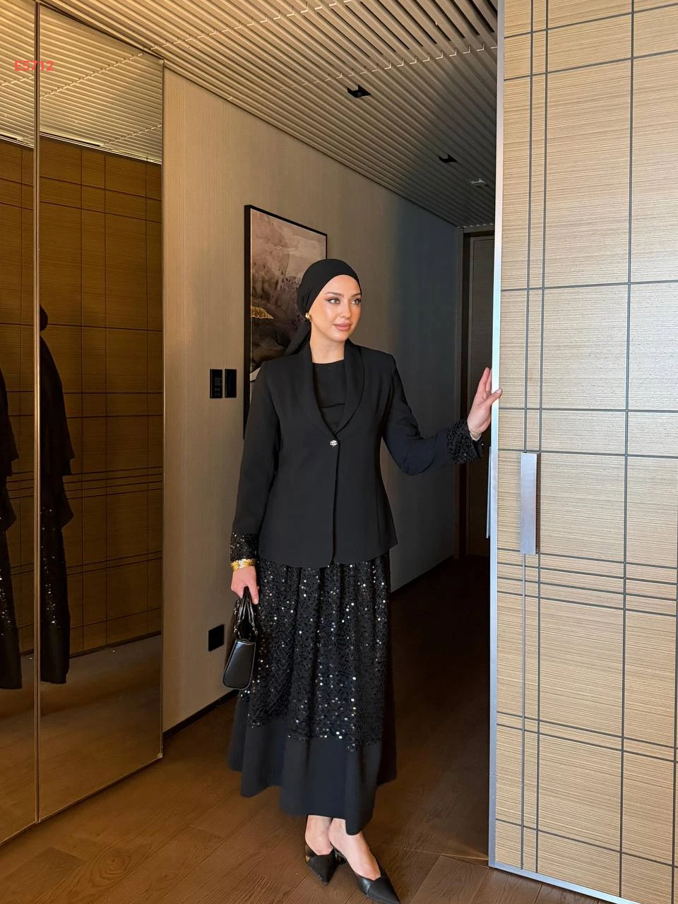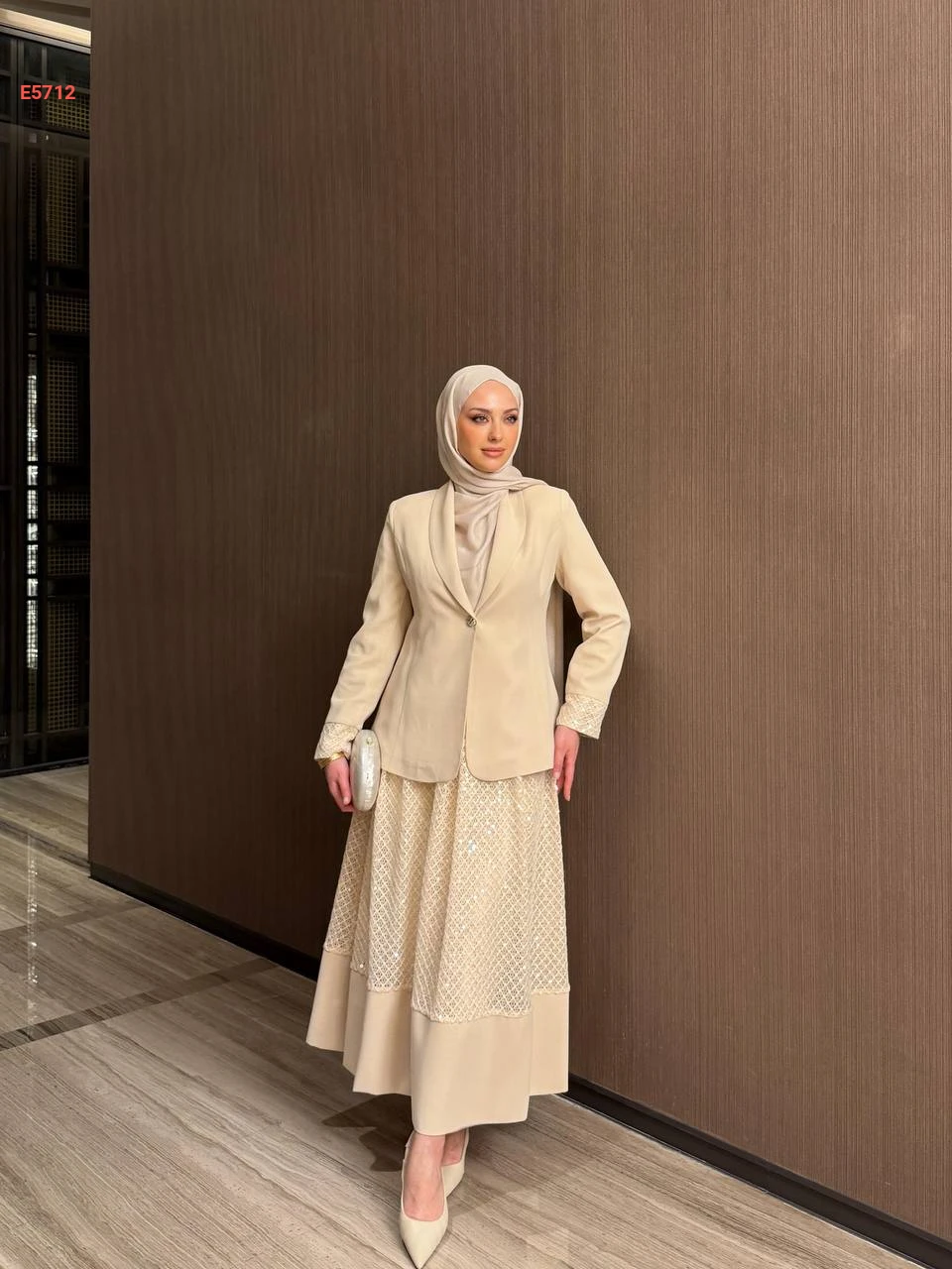 طقم تنورة مطرزة بالترتر مع بليزر