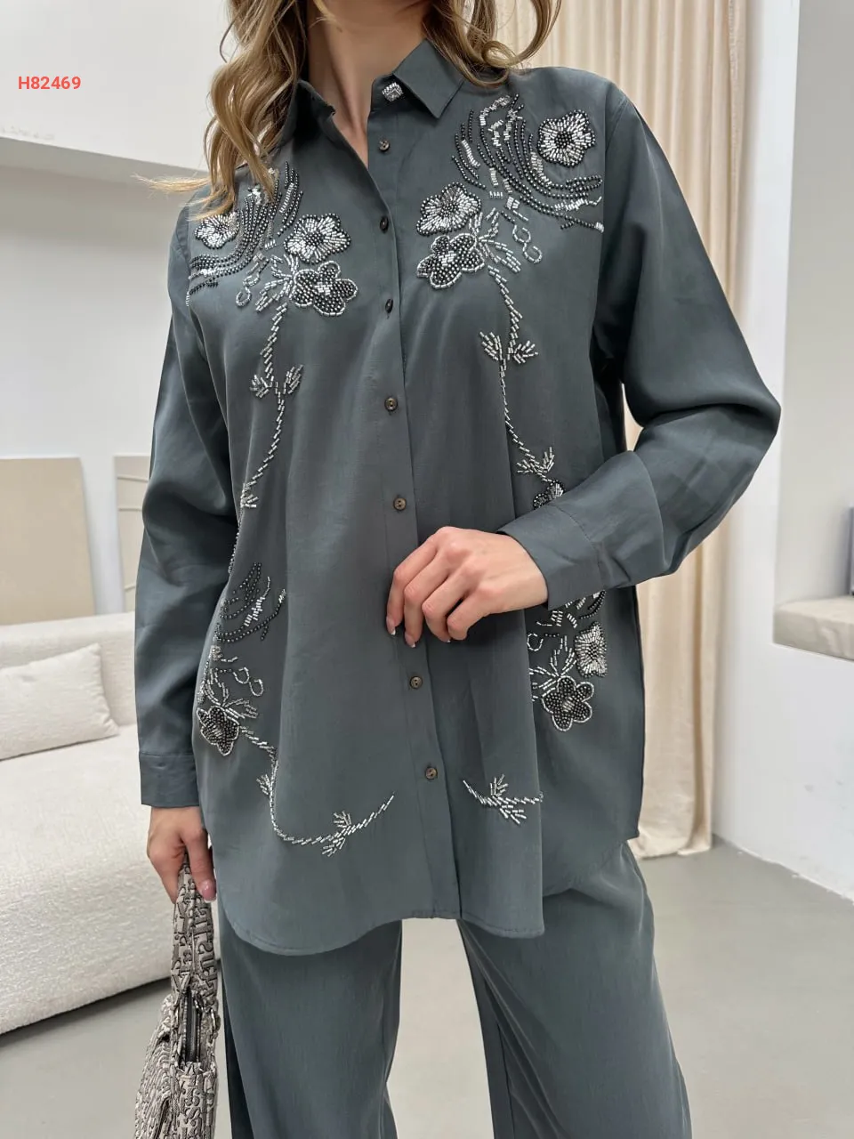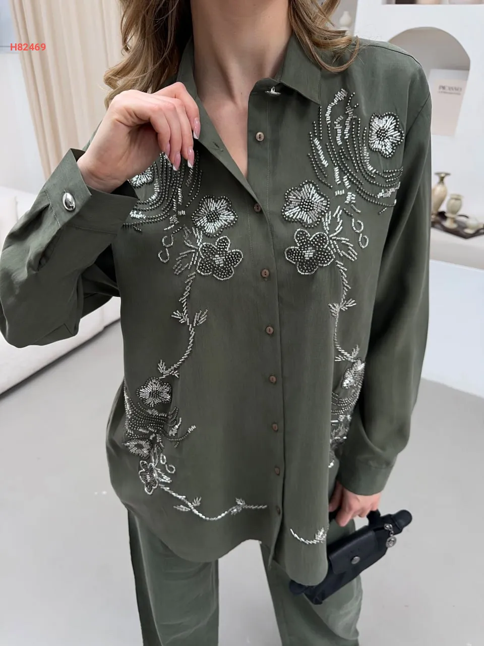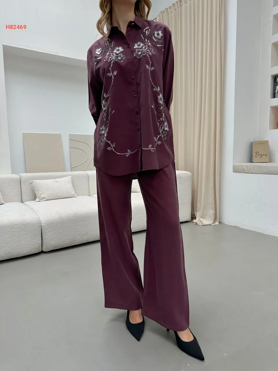 طقم قميص مطرز مع بنطال
