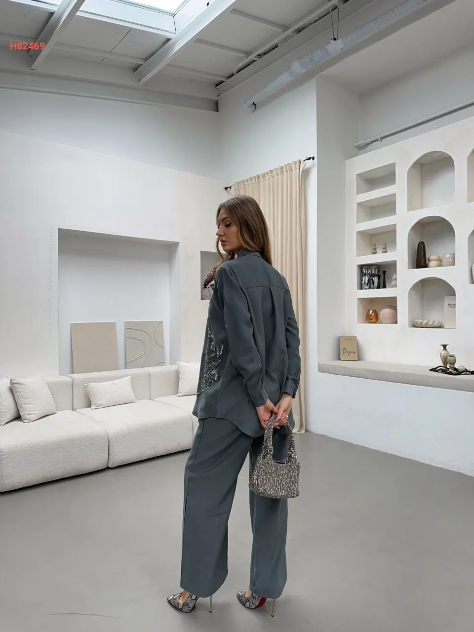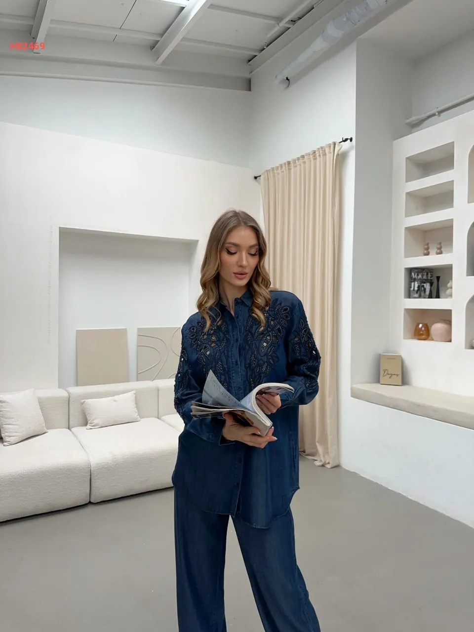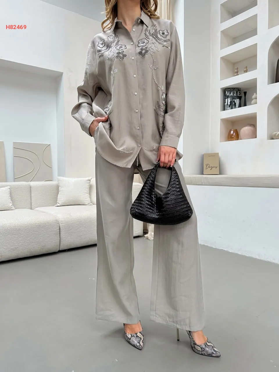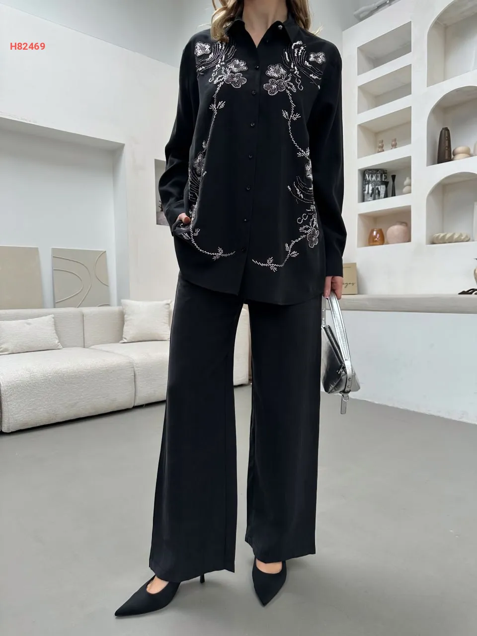 طقم قميص مطرز مع بنطال