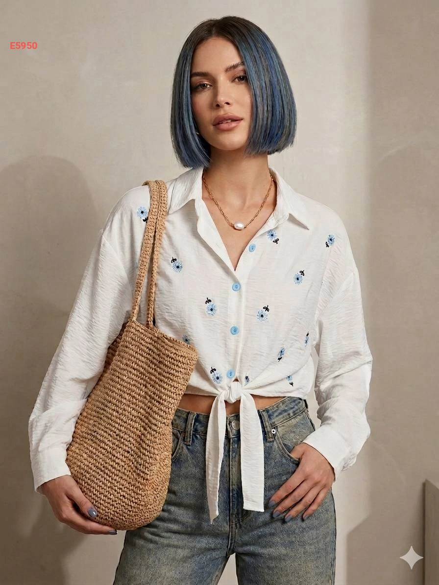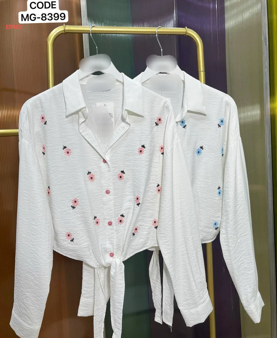 قميص مطرز ورد بربطة أمامية