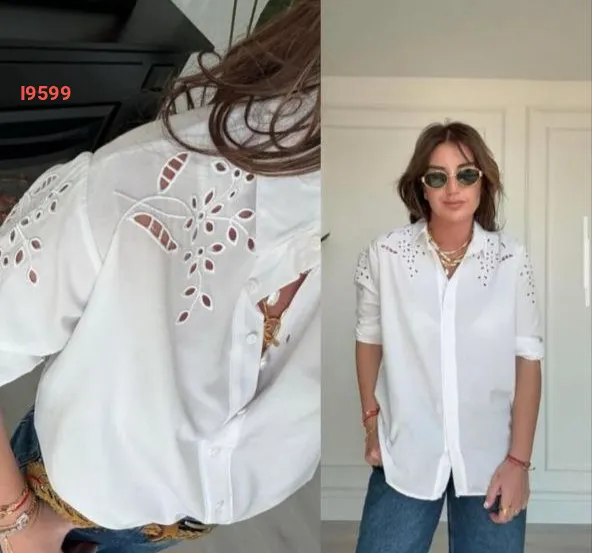 قميص مطرز بتفاصيل مفرغة