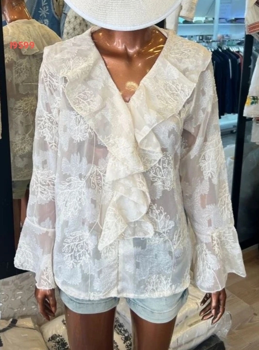 قميص مطرز بتفاصيل كشكش