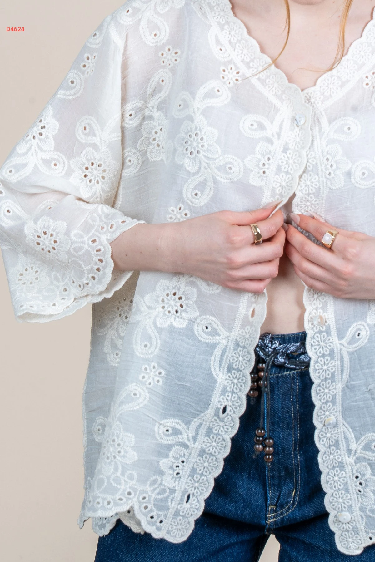 قميص مطرز بأكمام واسعة