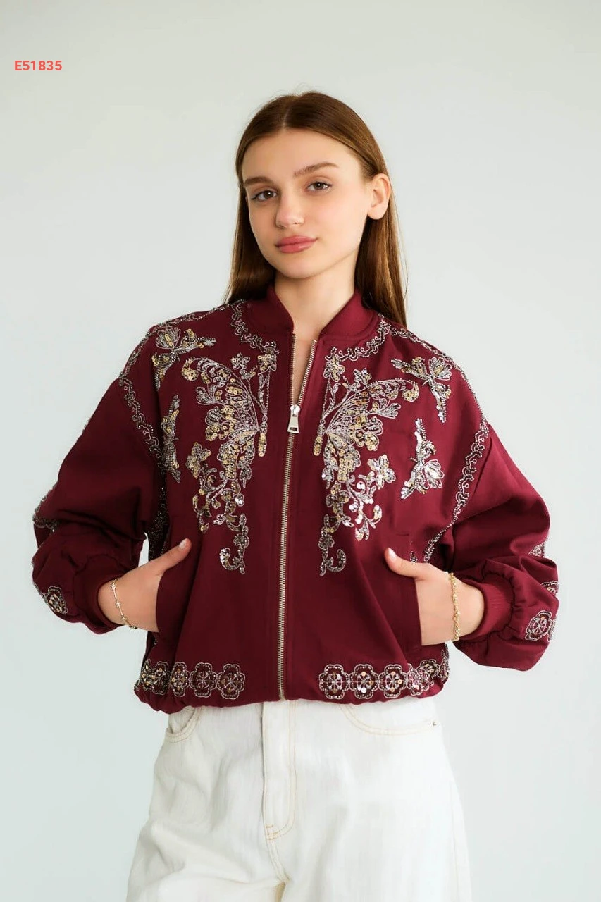 جاكيت قصير مطرز بسحاب