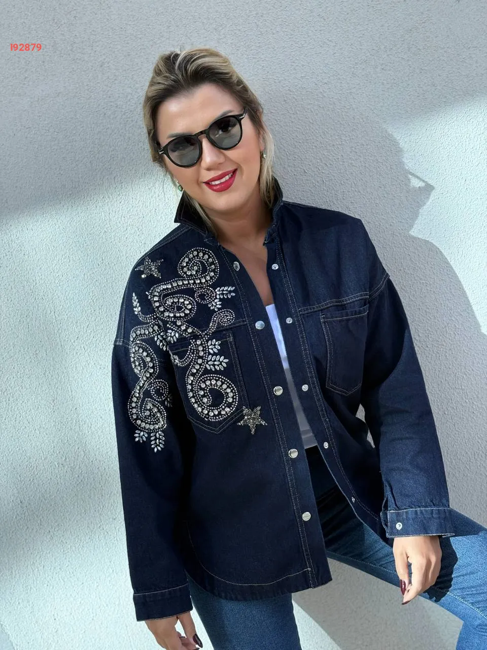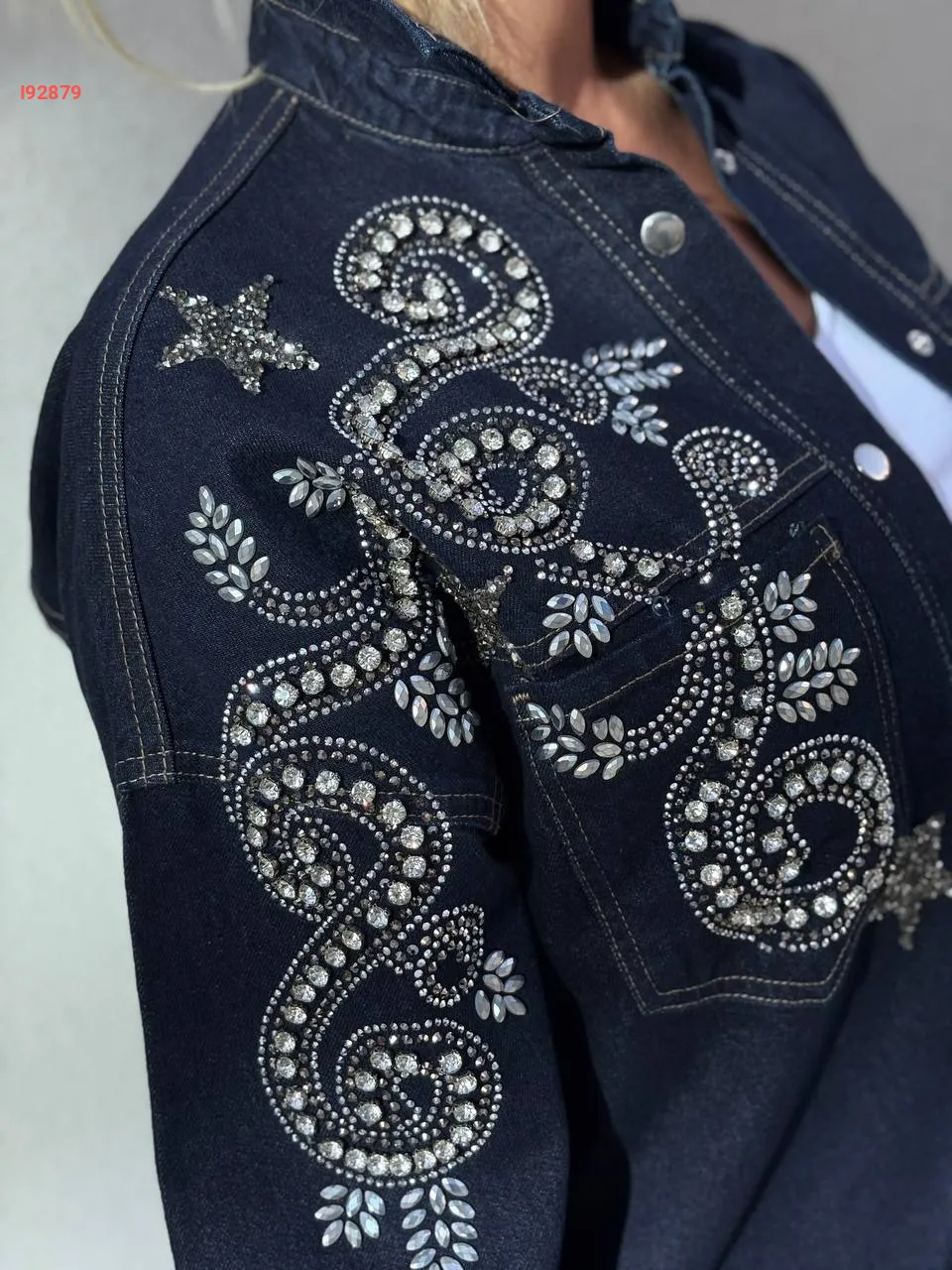 جاكيت جينز مطرز أحجار
