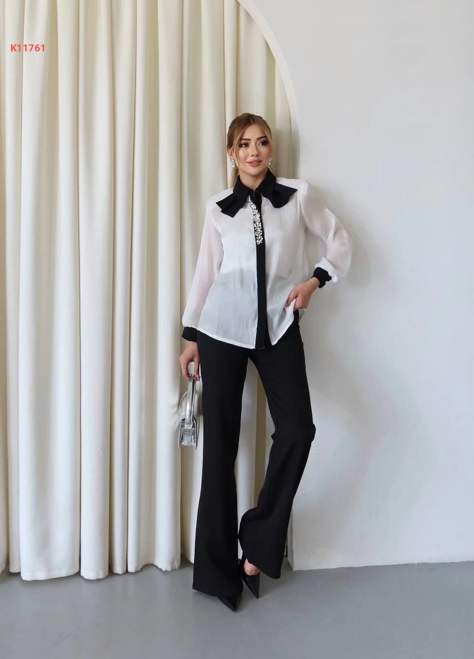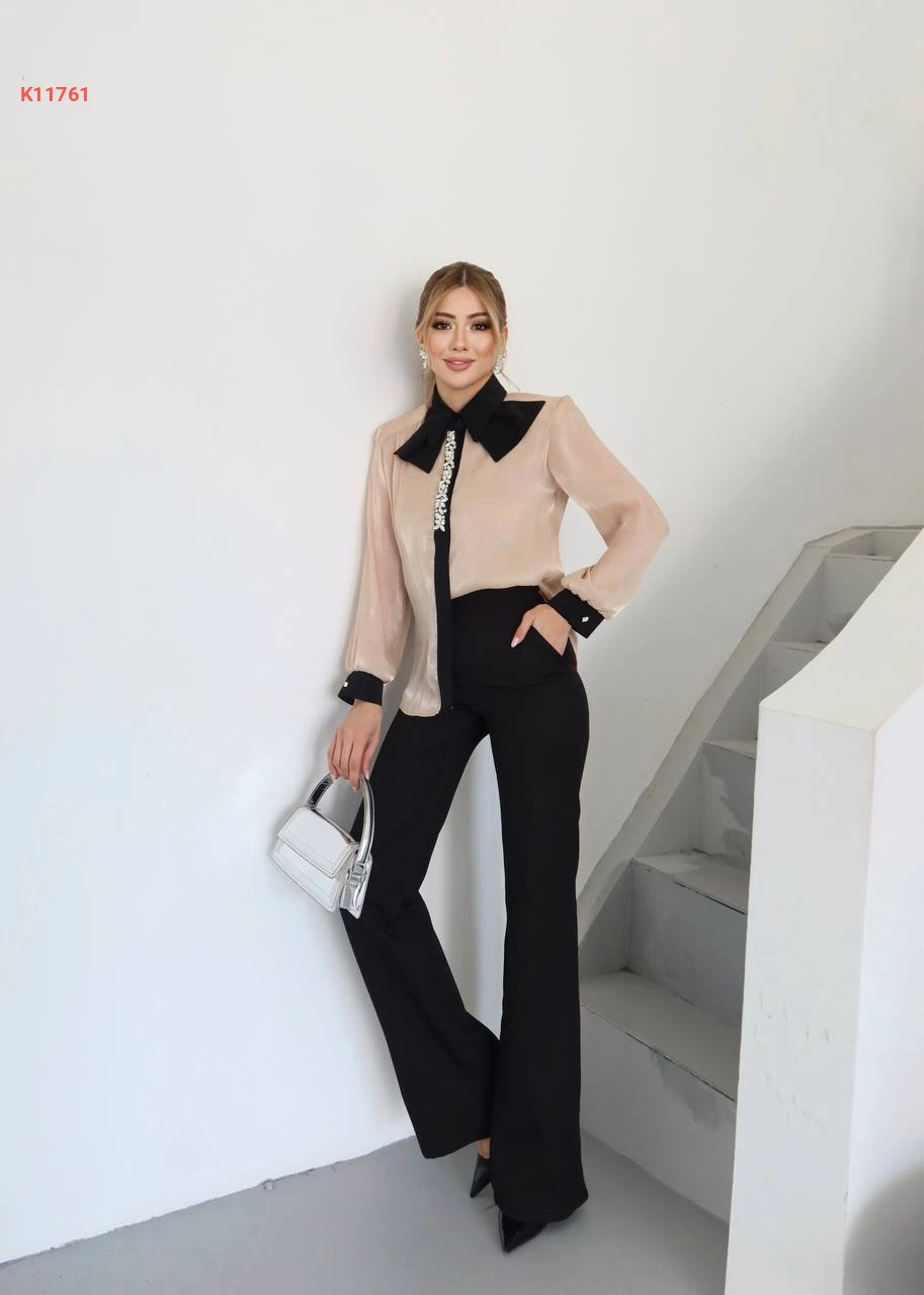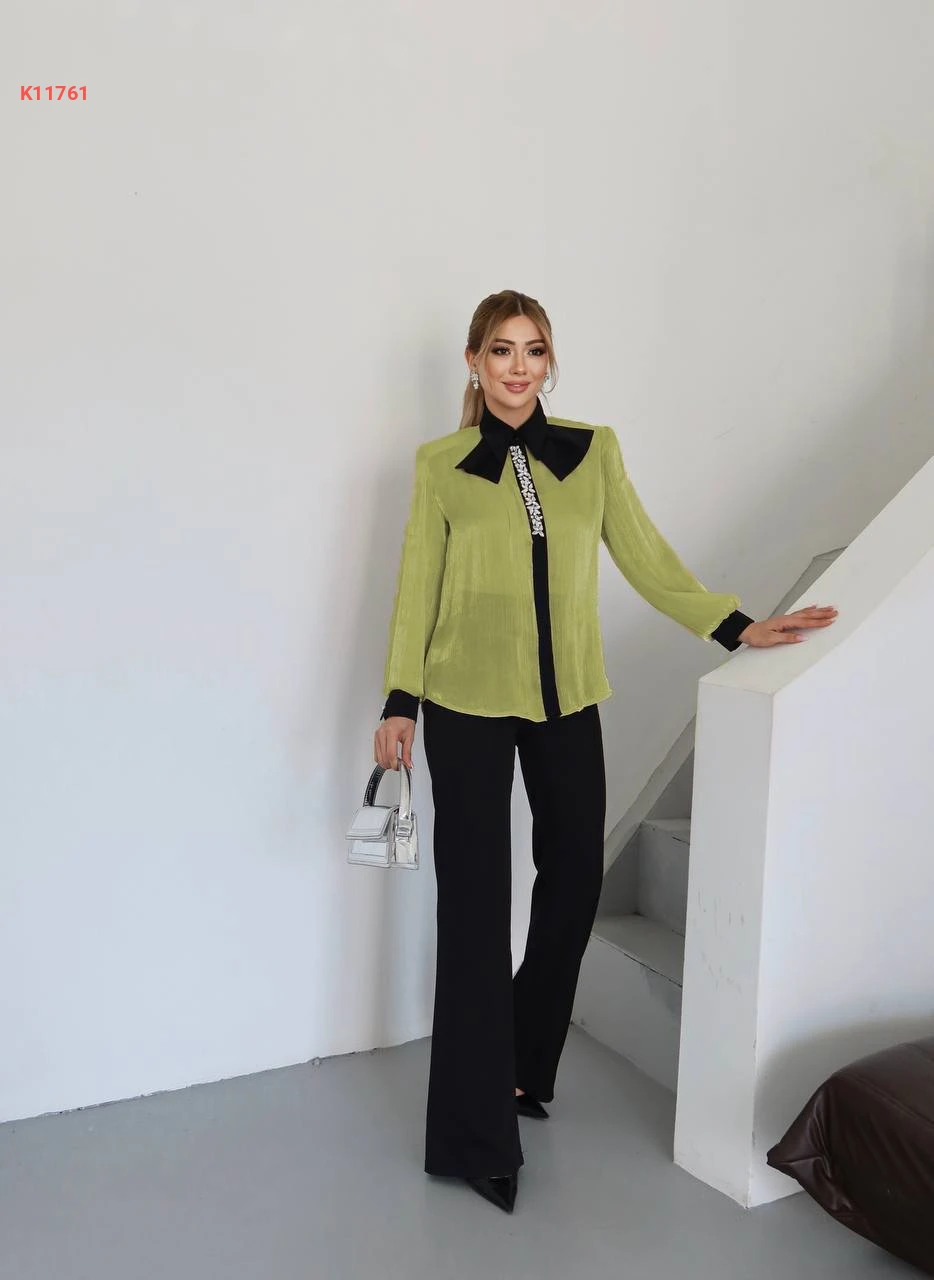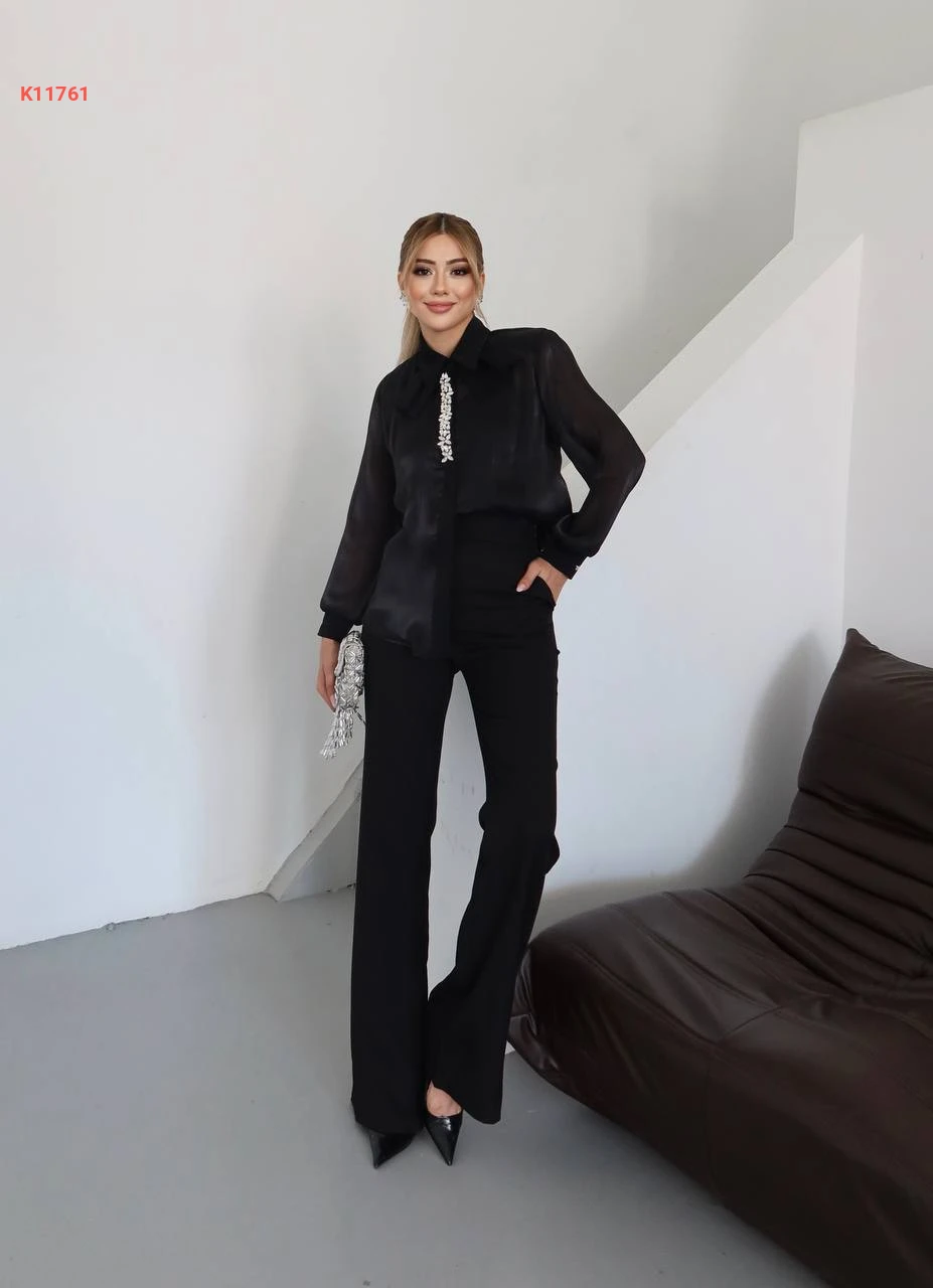 طقم بنطال وبلوزة مطرزة أحجار