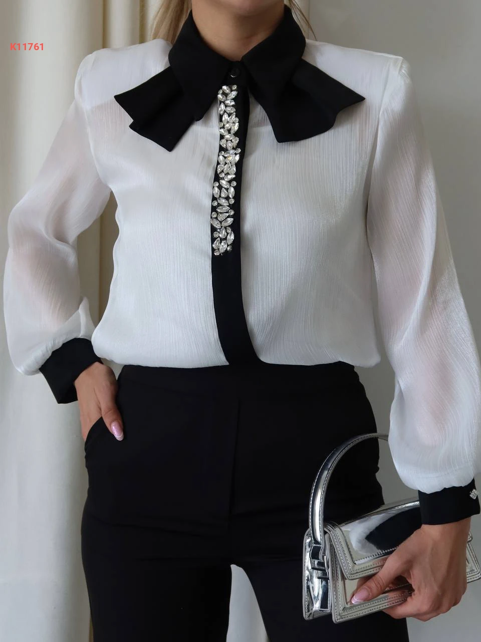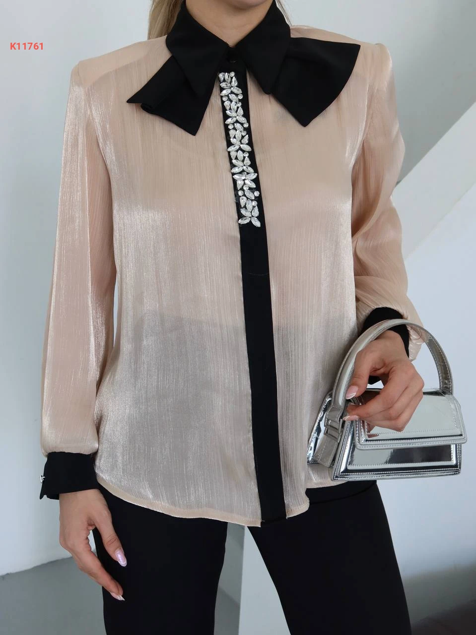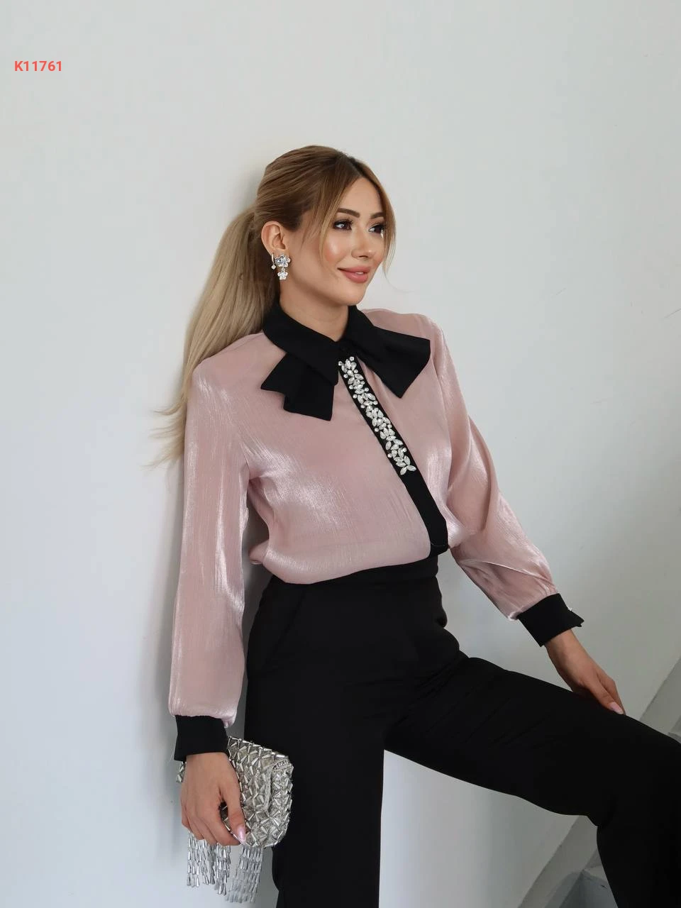 طقم بنطال وبلوزة مطرزة أحجار