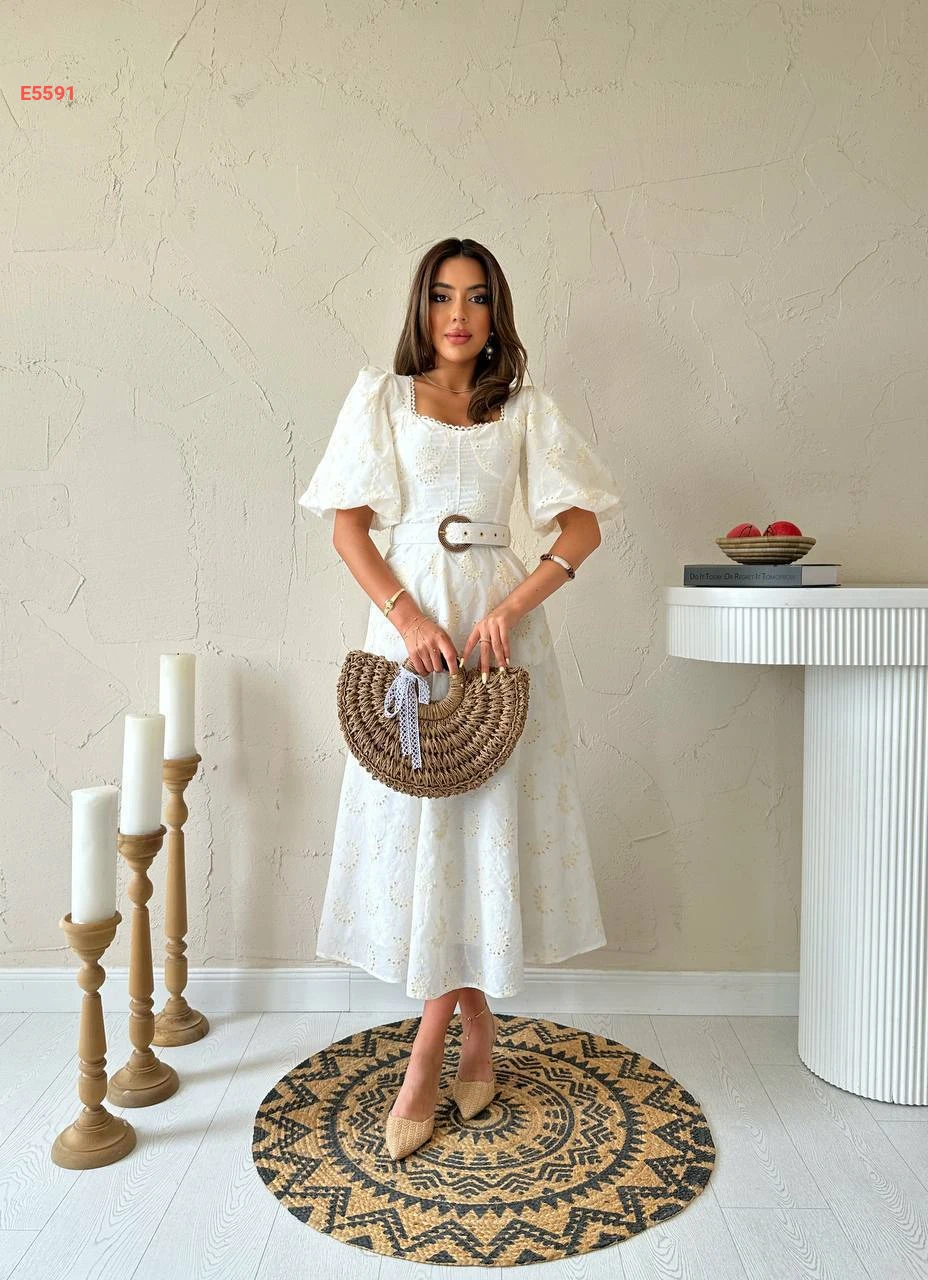 فستان صيفي مطرز بأكمام نفخ قصيرة