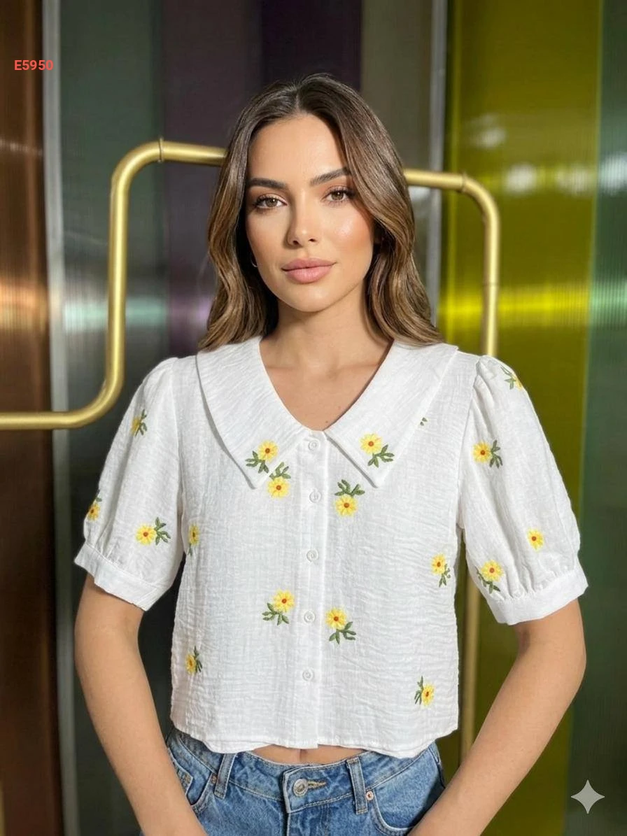 قميص صيفي مطرز ورد