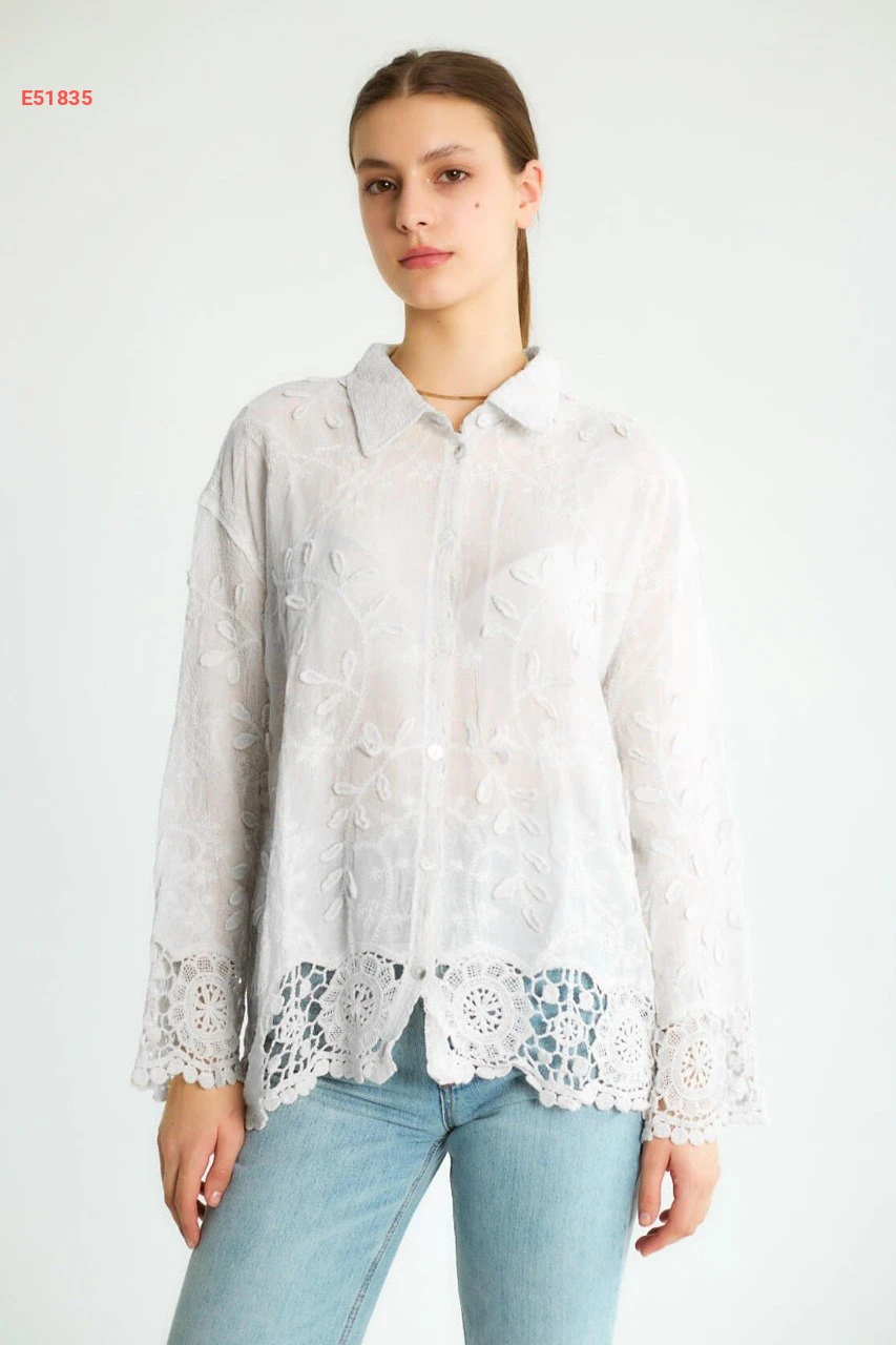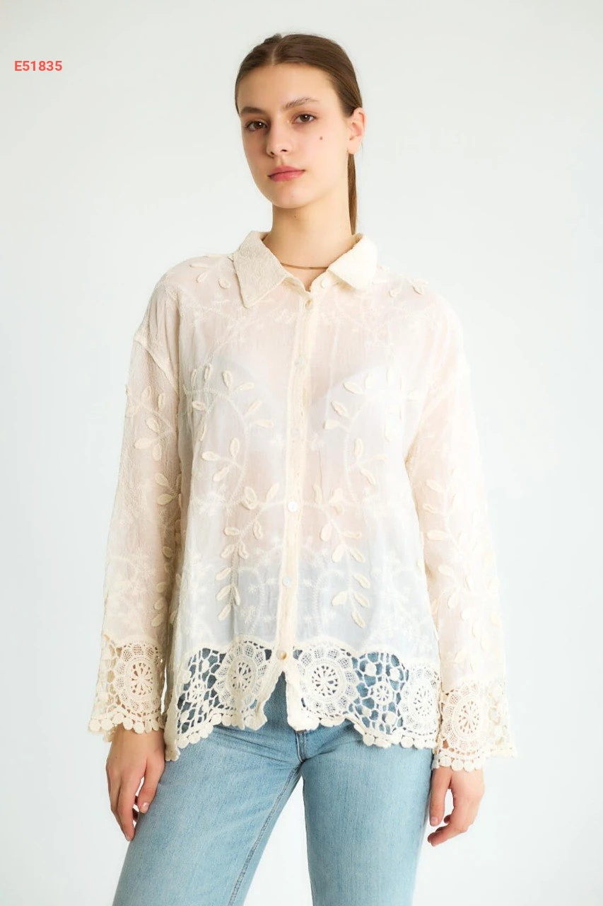 قميص صيفي مطرز مع تفاصيل مفرغة