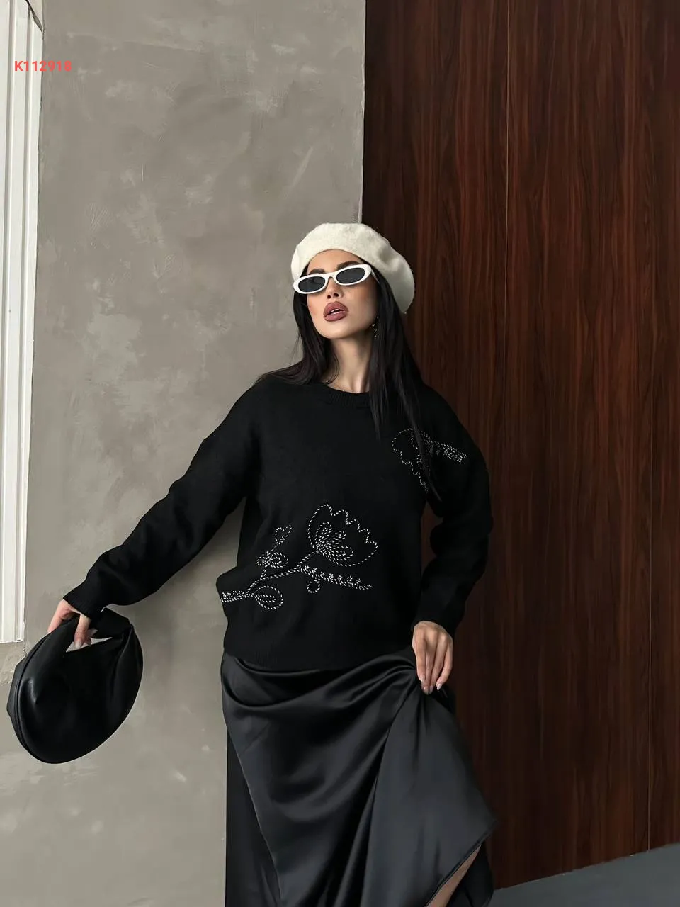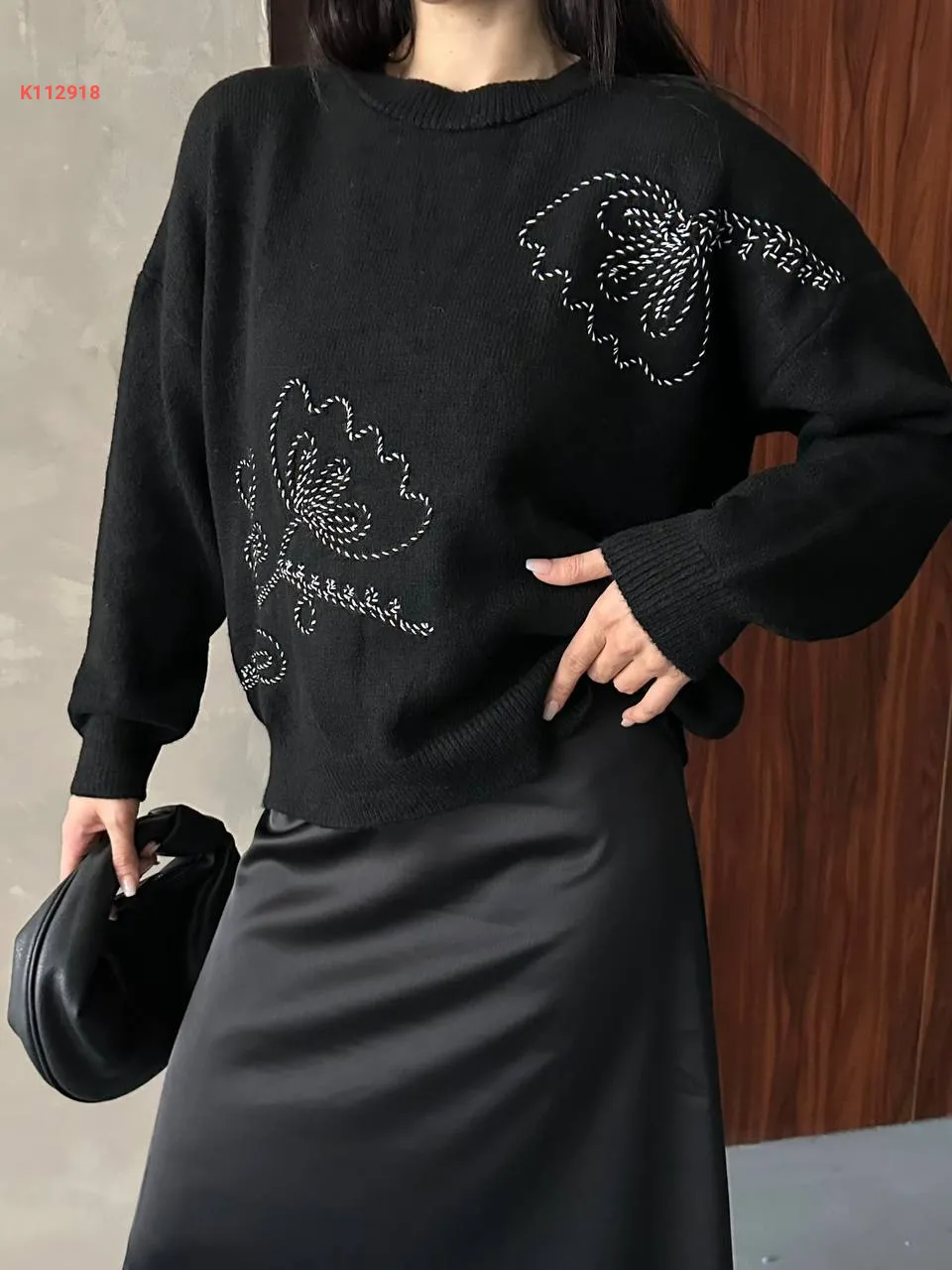 كنزة كم طويل مطرزة خرز ولولو