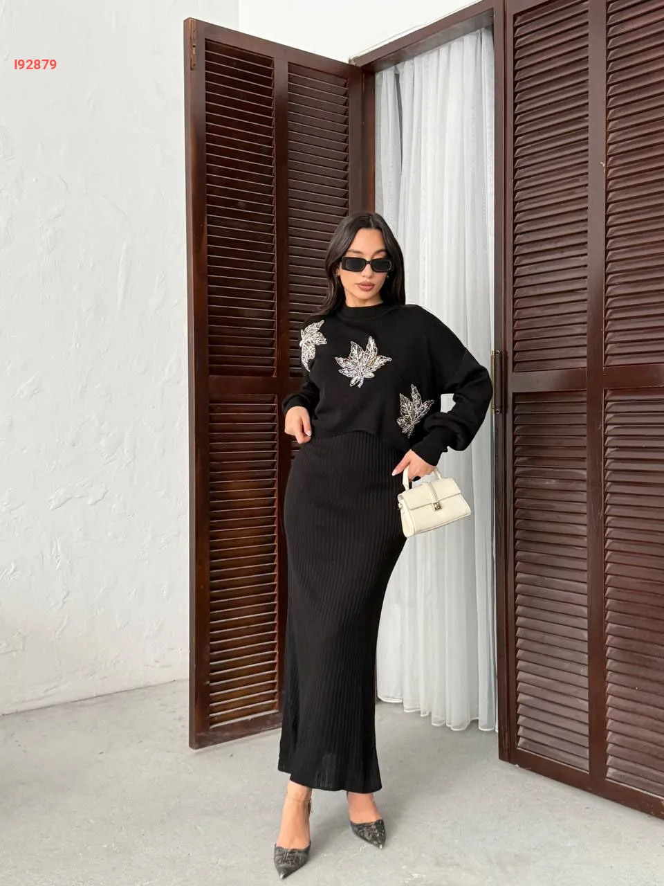 فستان تريكو مع كنزة مطرزة