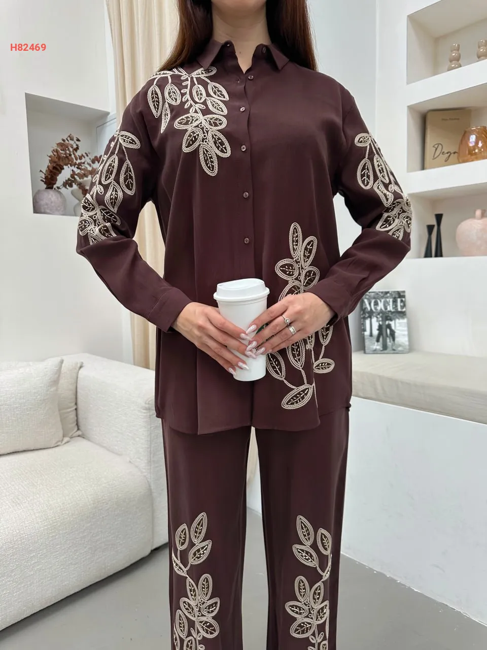 طقم قطعتين مطرز محجبات