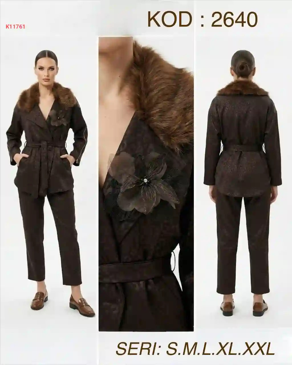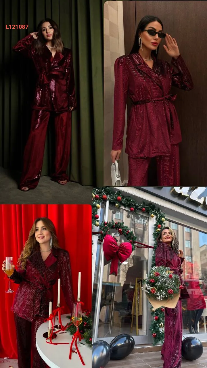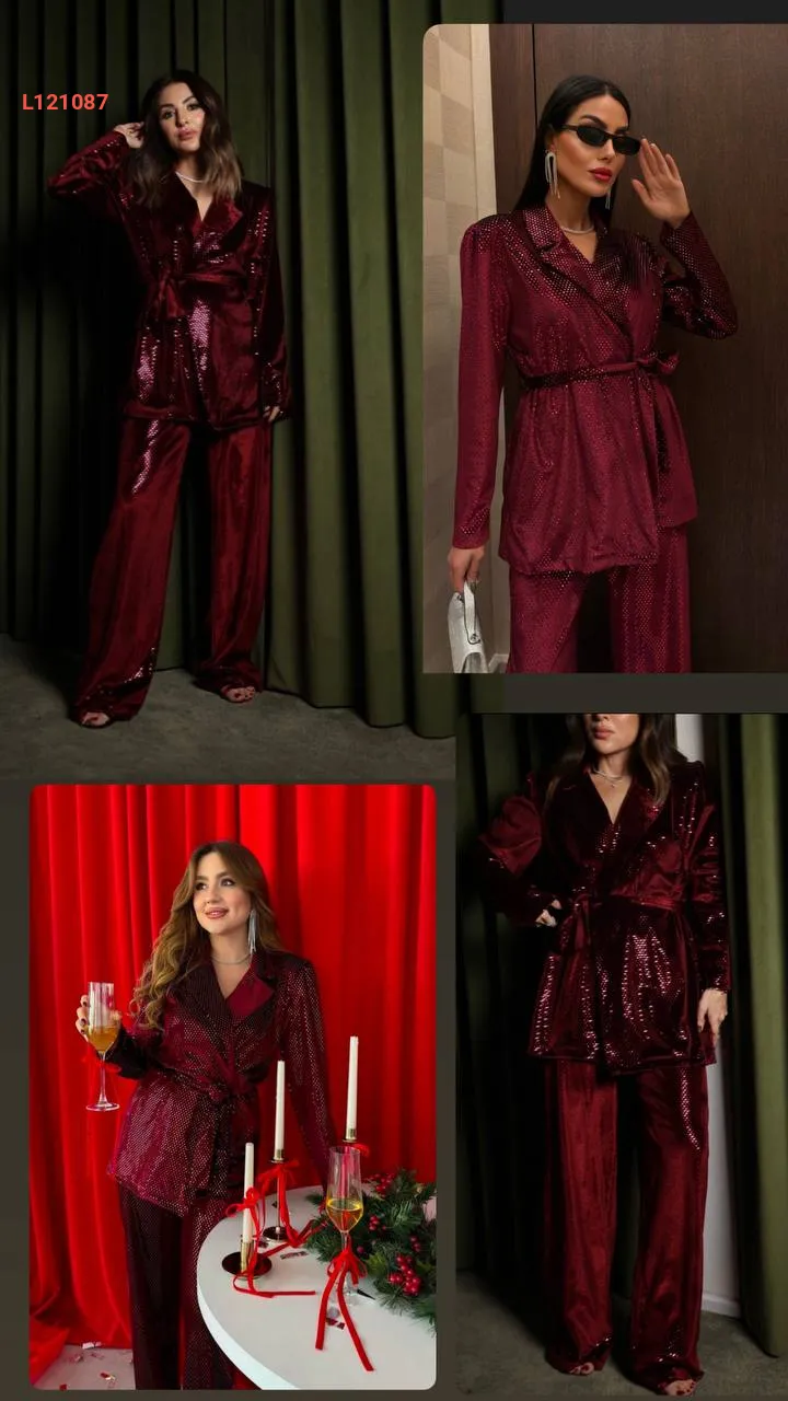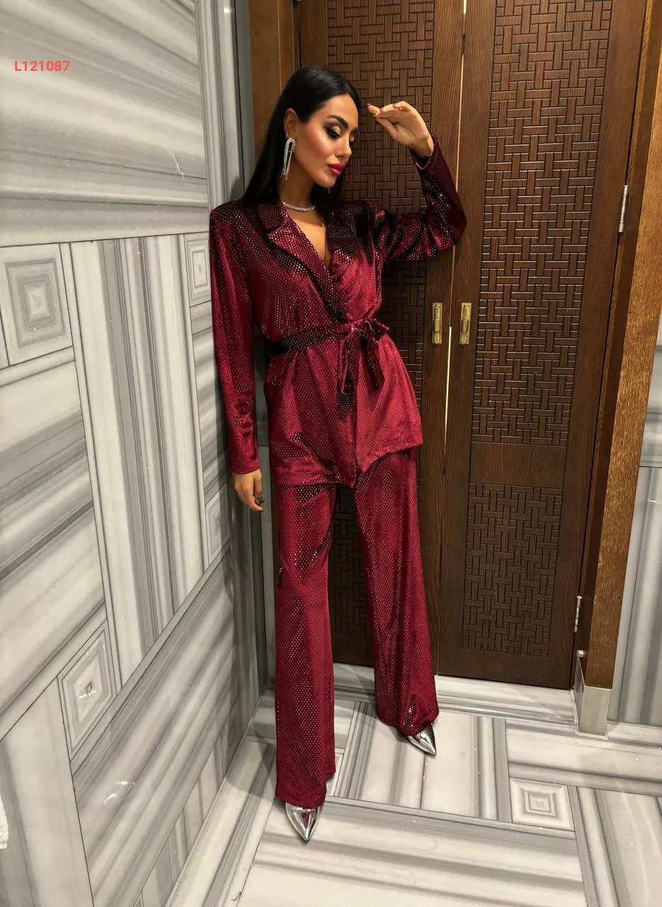 طقم بنطال مخمل مطرز بالترتر وجاكيت