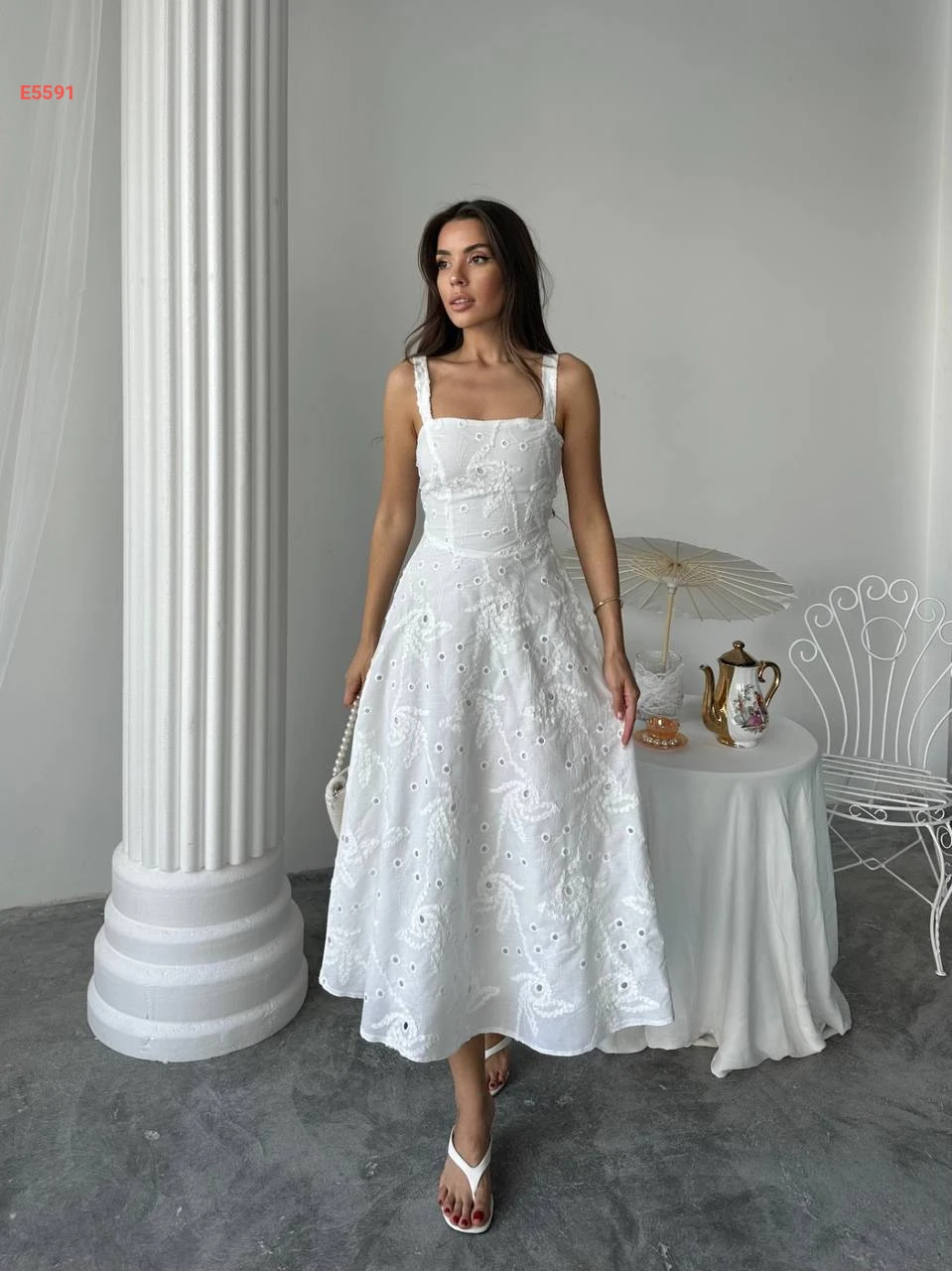 فستان أبيض صيفي مطرز