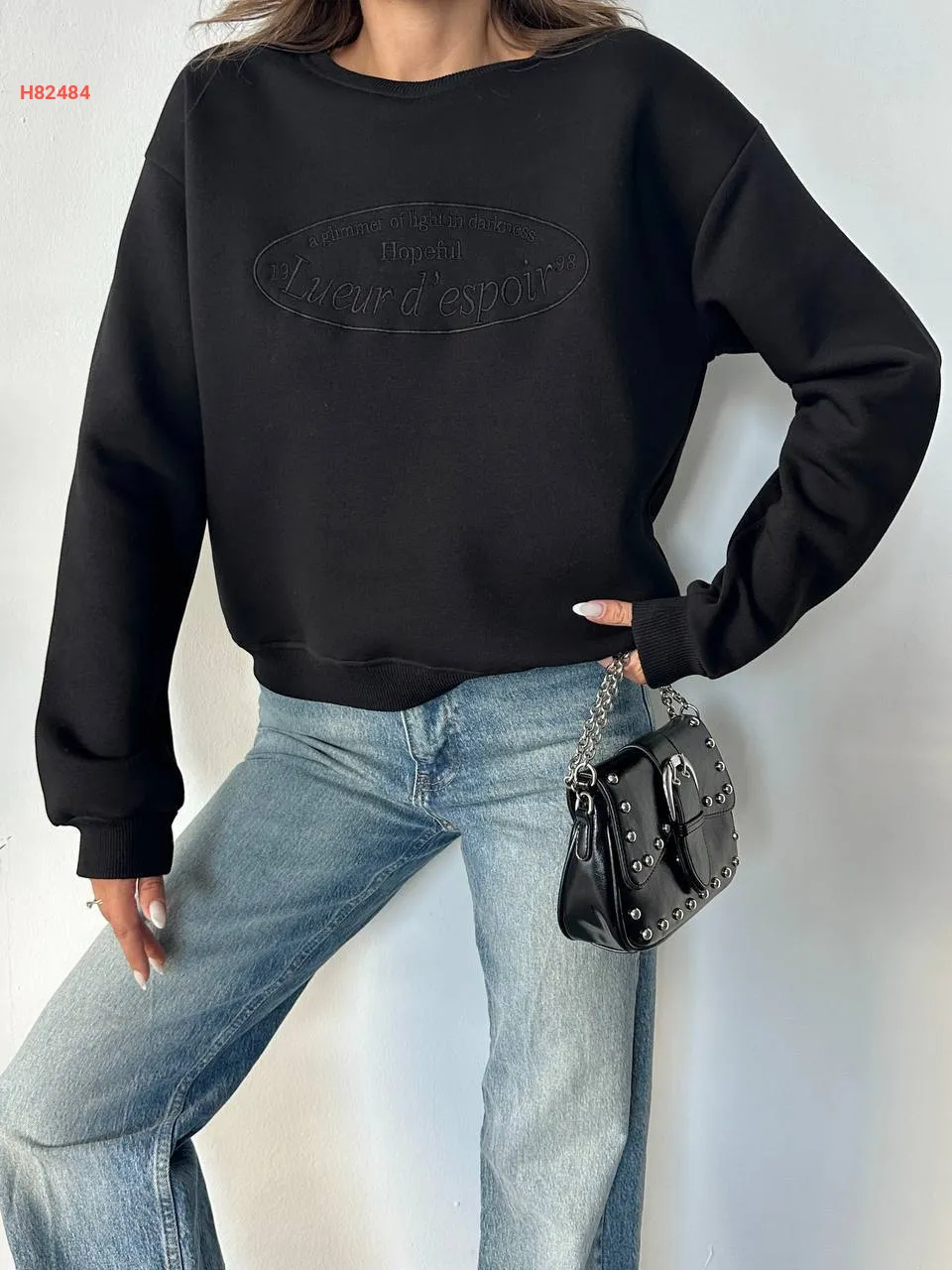 كنزة كم طويل لميع بياقة قارب