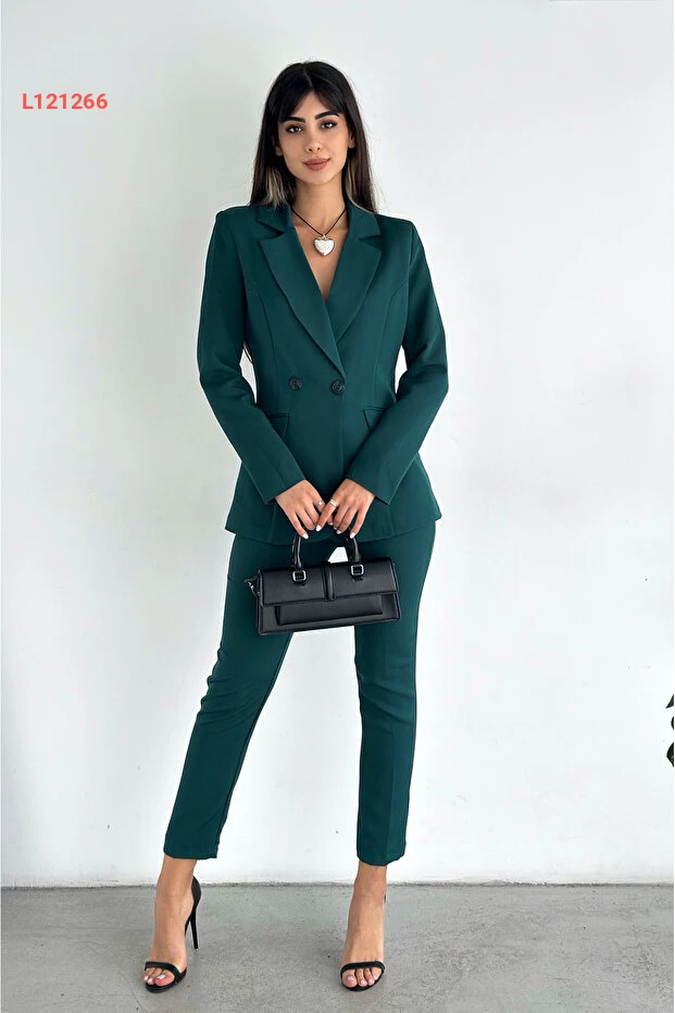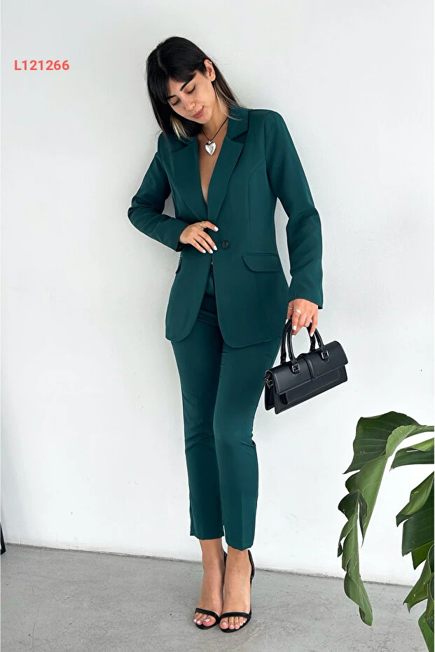 ارتقِ بأناقتك مع طقم البدلة المكون من سترة كرووازه وسروال حيوط بلون الزمرد الأخضر. التصميم العصري والجذاب يضفي لمسة من الفخامة على إطلالتك، بينما توفر الخامة الممتازة الراحة والمرونة في الحركة. مثالي للمناسبات الرسمية أو الأوقات اليومية، هذا الطقم هو الخيار المثالي لتعكس أناقتك الفريدة.