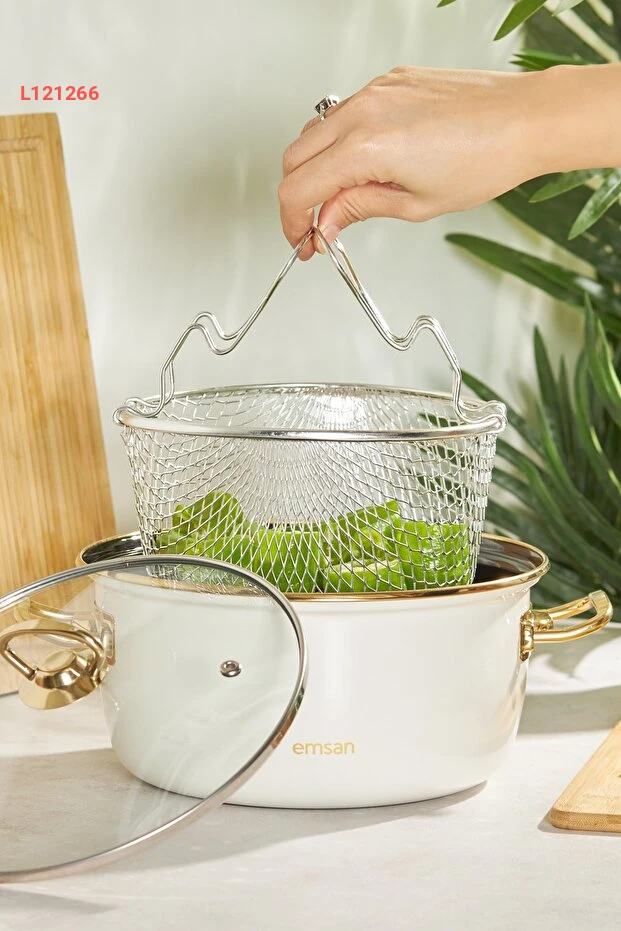 تستمتع بالطهي الكلاسيكي مع قدر القلي Emsan Nostalji Emaye بفضل تصميمه العصري ولونه البيج الأنيق. مصنوع من مادة الإيمائي عالية الجودة، يضمن توزيع الحرارة بشكل متساوٍ للحصول على أفضل نتائج القلي، بينما يضيء لمسة من الحنين في مطبخك. استمتع بالوجبات المقرمشة واللذيذة مع لمسة من الأناقة!