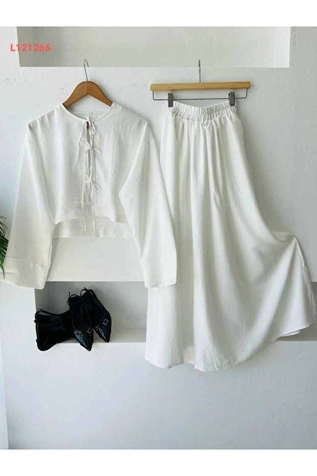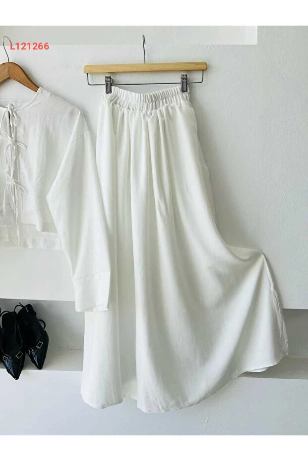 اكتشفي أناقتك مع طقم ENDAMIM المكون من بلوزة وتنورة من الكتان، الذي يجمع بين الراحة والأناقة. يتميز بتصميمه العصري مع ياقة دائرية وحزام مرن عند الخصر، مما يمنحك مظهرًا متجددًا يناسب كل المناسبات اليومية. اختاري هذا الطقم المثالي لتعبري عن أنوثتك بثقة وراحة طوال اليوم!