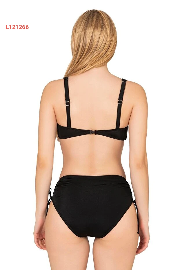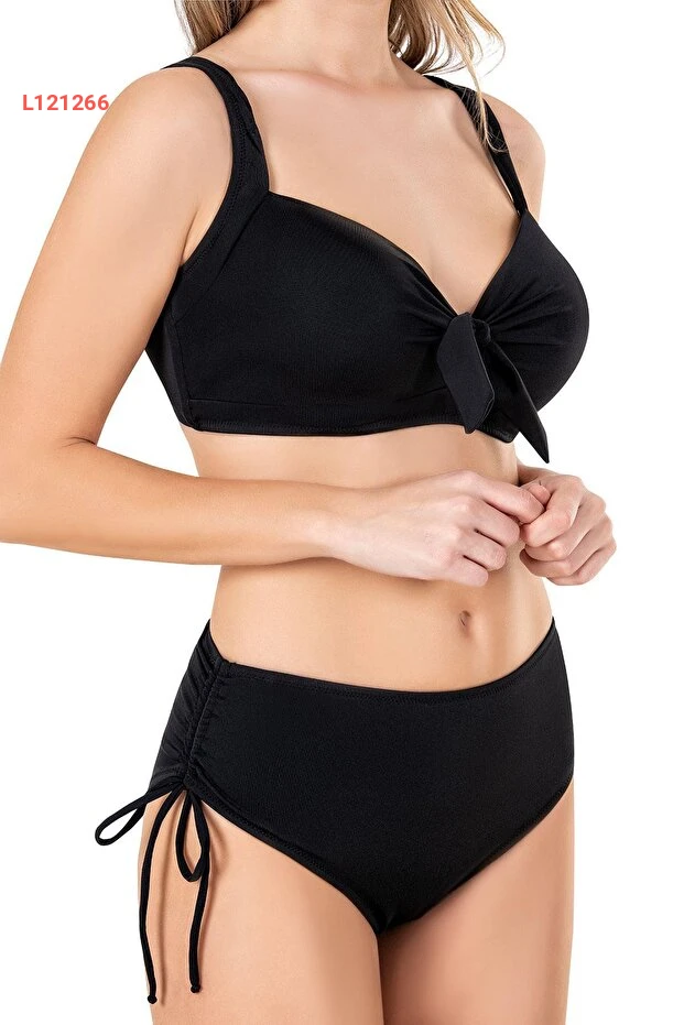 بيكيني نسائي كبير الحجم مع تفاصيل فيونكة باللون الأسود