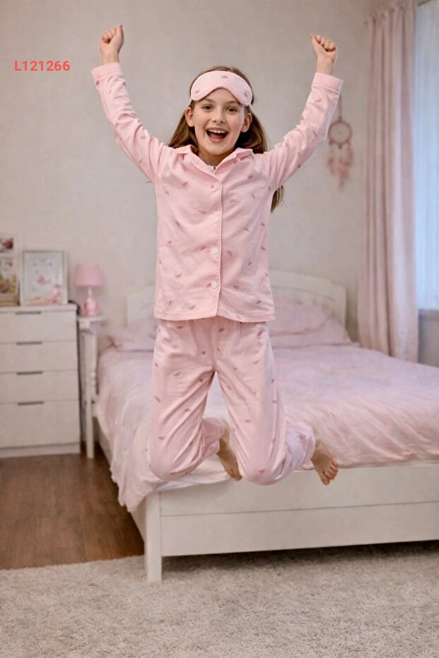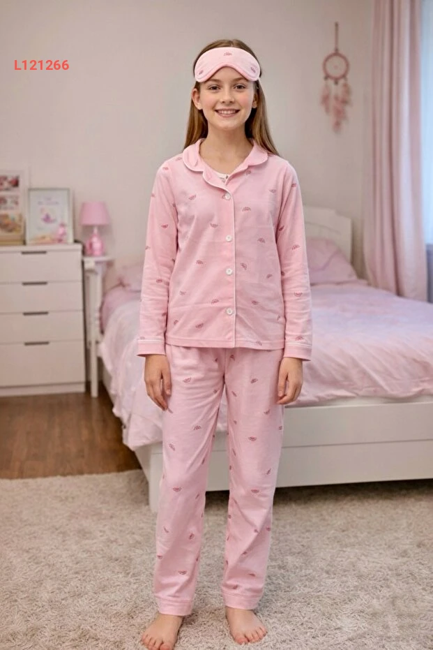 اجعل نوم صغيرتك أكثر راحةً وأناقةً مع بيجامة إنّي كيز للطفلات! تتميز هذه المجموعة بكونها مصنوعة من 100% قطن ناعم، مما يضمن راحة مثالية طوال الليل. تأتي بتصميم كزر أبيض جذاب ومبهج مع عصابة للعين، لتضفي لمسة من المرح على أوقات النوم والاسترخاء.