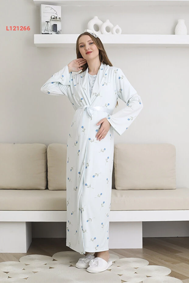 روب نوم طويل مع كيمينو مثالية للأمهات الحوامل مع 6 أزرار للرضاعة وتناسب الحشمة