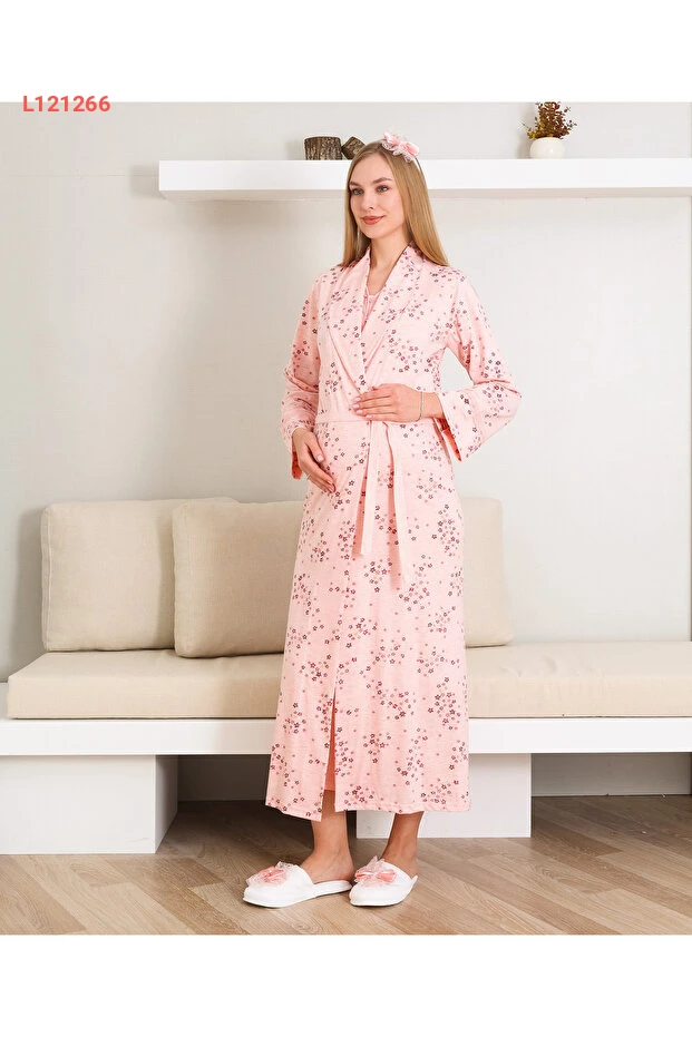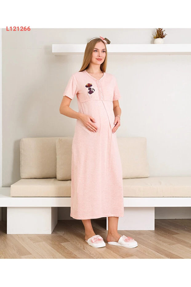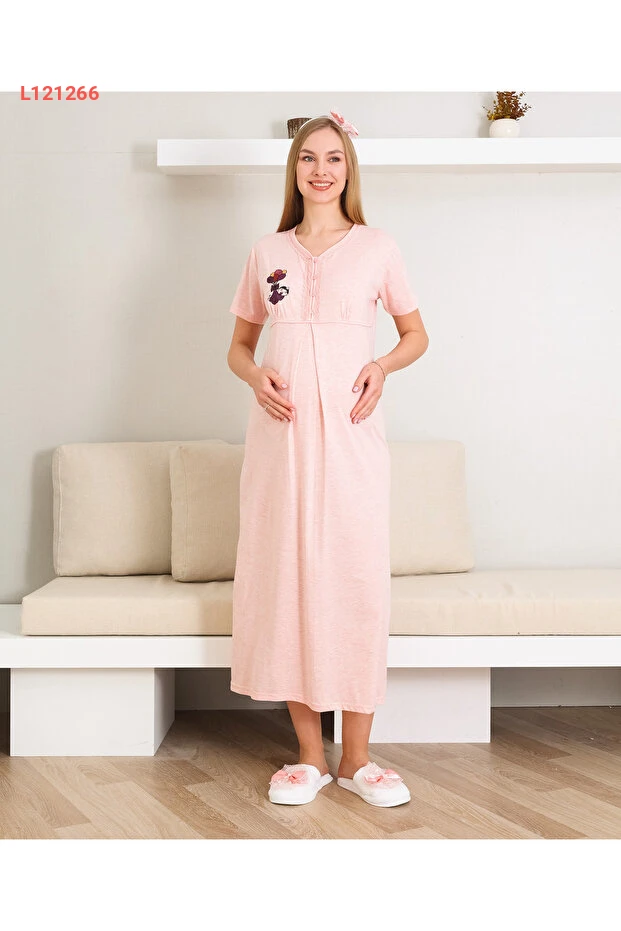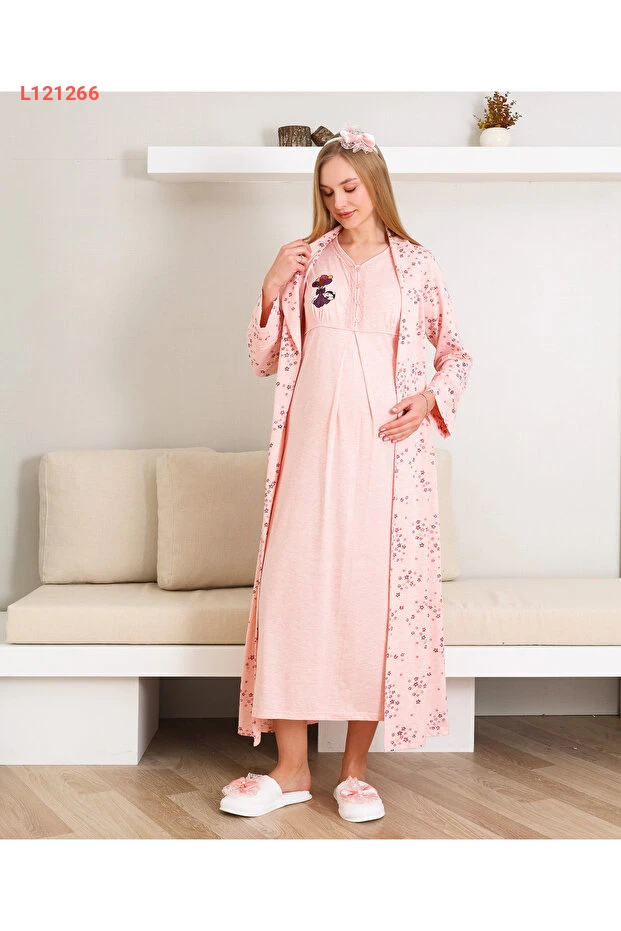 استمتع براحة وأناقة لا مثيل لها مع طقم الأمومة من ERDENİZ TEKSTİL، الذي يتضمن ليلك مميز وسابلاحي بكم قصير ونقش جذاب. يتميز بالتطريز الأنيق، مما يجعله الخيار المثالي للحوامل الباحثات عن أسلوب فريد وإحساس بالراحة خلال أيامهم الخاصة.