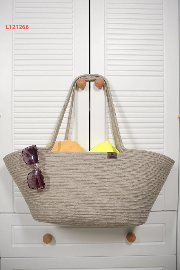 ERSU AHAT HOME DESİGN Doğal Hasır Jüt El Örmesi Bej-krem Kadın Plaj Çantası Plaj çantası
