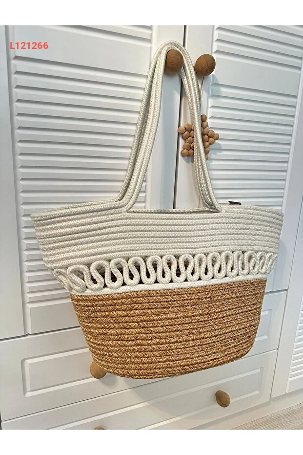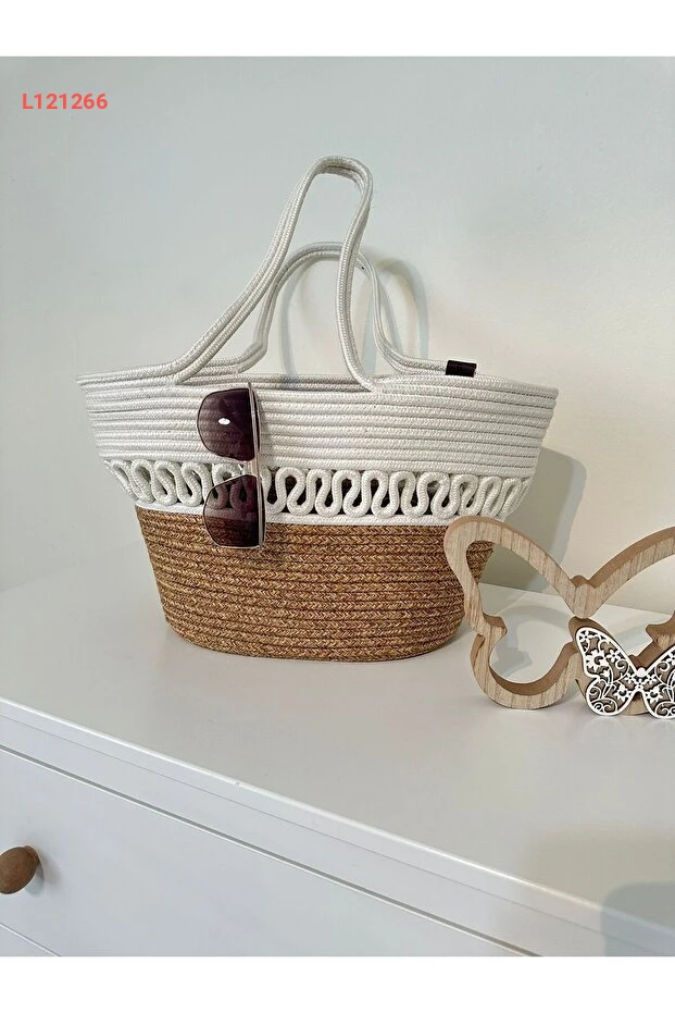ERSU AHAT HOME DESİGN Doğal Hasır Jüt El Örmesi Kadın Plaj Çantası