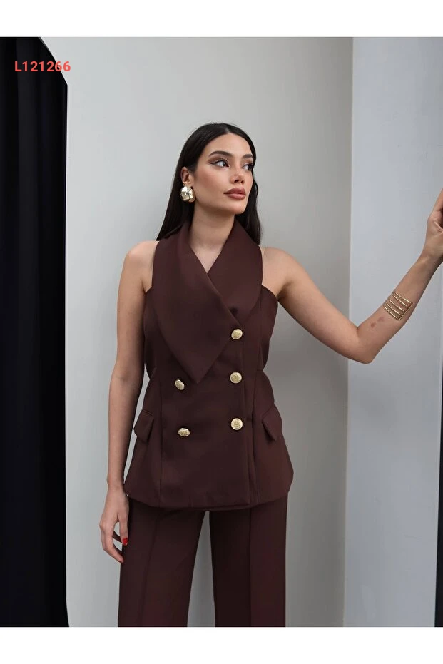 استمتع بأناقة متكاملة مع مجموعة ESRAHELVACI المكونة من سترة وبنطال متقاطعين. تتميز هذه المجموعة بتصميم عصري يضمن لكِ إطلالة أنيقة ومريحة في آن واحد، مع خامات عالية الجودة توفر لكِ الراحة والمرونة طوال اليوم. ارتقي بأسلوبكِ وأضيفي لمسة من التميز إلى خزانتكِ!