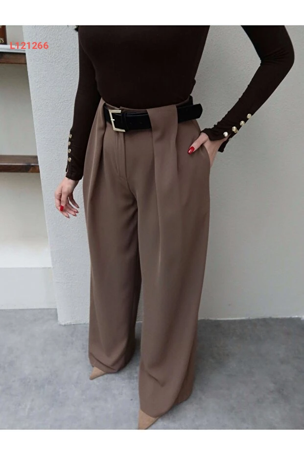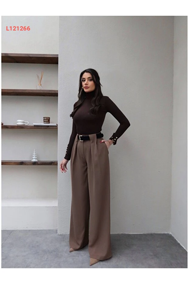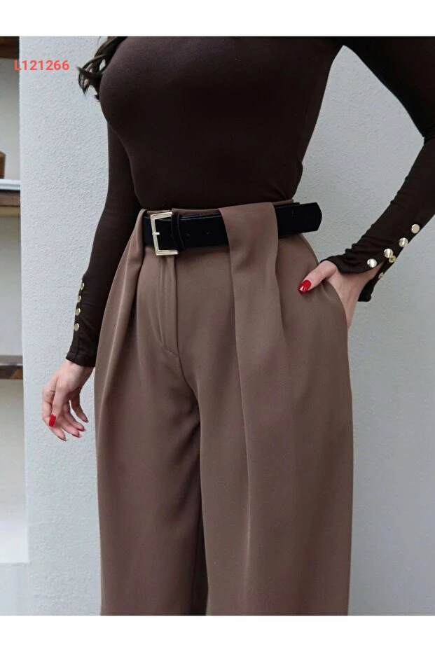 اكتشفي أناقتك مع بنطلون بالازو الكمري التفصيلي من ESRAHELVACI! يتميز بتصميمه العصري وقصته الواسعة التي تضفي عليك حرية الحركة وراحة لا تضاهى. بفضل تفاصيله الفريدة، يصبح هذا البنطلون الخيار المثالي لإطلالة متكاملة تناسب كل المناسبات.