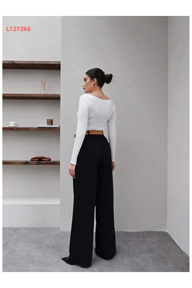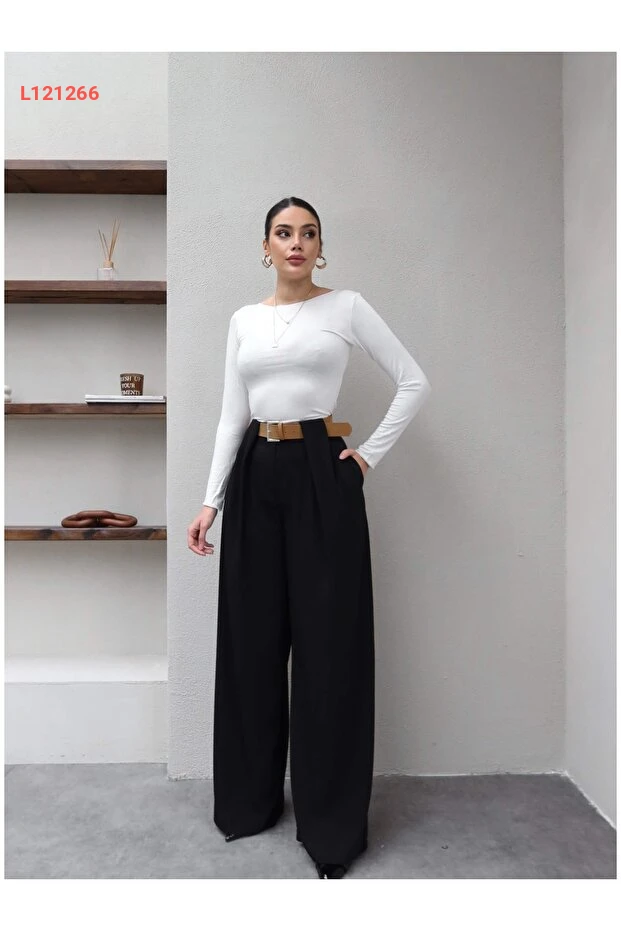 استمتع بإطلالة أنيقة وعصرية مع بنطال بالازو المزود بحزام من ESRAHELVACI! يتميز بتفاصيل الجسر الرائعة التي تضيف لمسة فريدة، بينما يوفر التصميم الفضفاض الراحة والحركة السلسة طوال اليوم. ارتديه في المناسبات الاجتماعية أو في العمل ليكمل مظهرك المثالي بتصميم يجمع بين الأناقة والراحة.