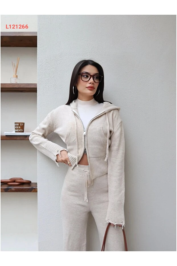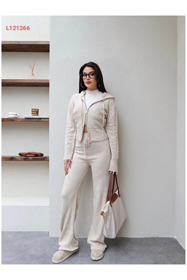 استمتع بالأناقة والراحة مع طقم "ESRAHELVACI" المكون من قطعة محبوكة مزودة بسحابين. يصنع هذا الطقم من مواد عالية الجودة تمنحك شعورًا ناعمًا على البشرة، بينما يضفي تصميمه العصري لمسة من الأناقة على إطلالتك اليومية. مثالي للاستخدام اليومي أو الفعاليات غير الرسمية، تألقي به في كل مناسبة!