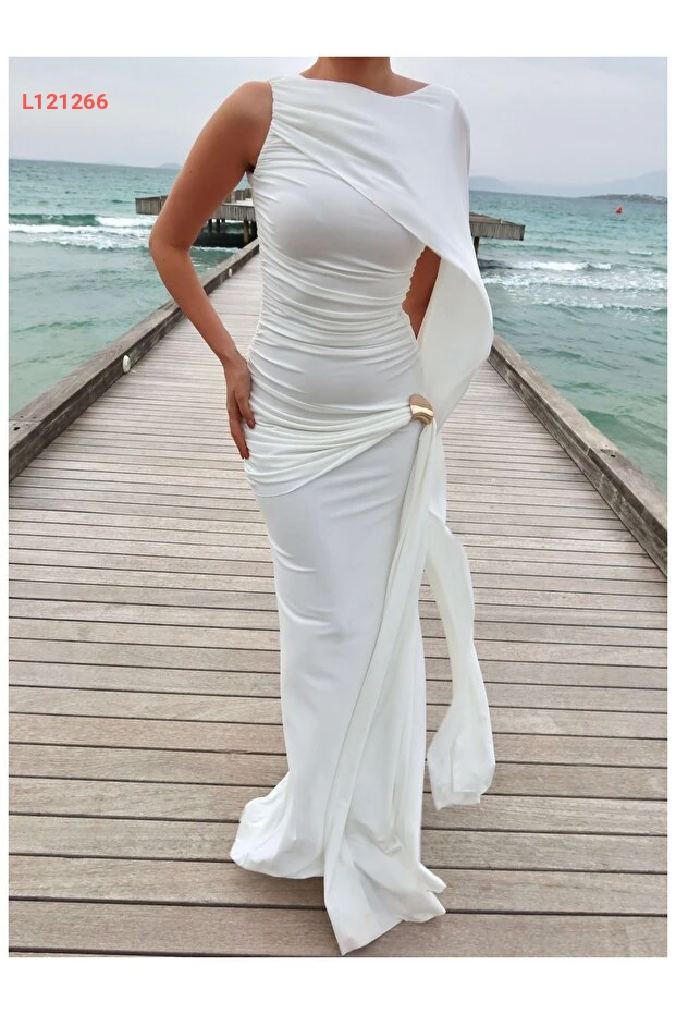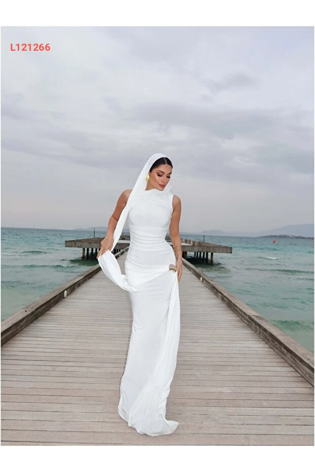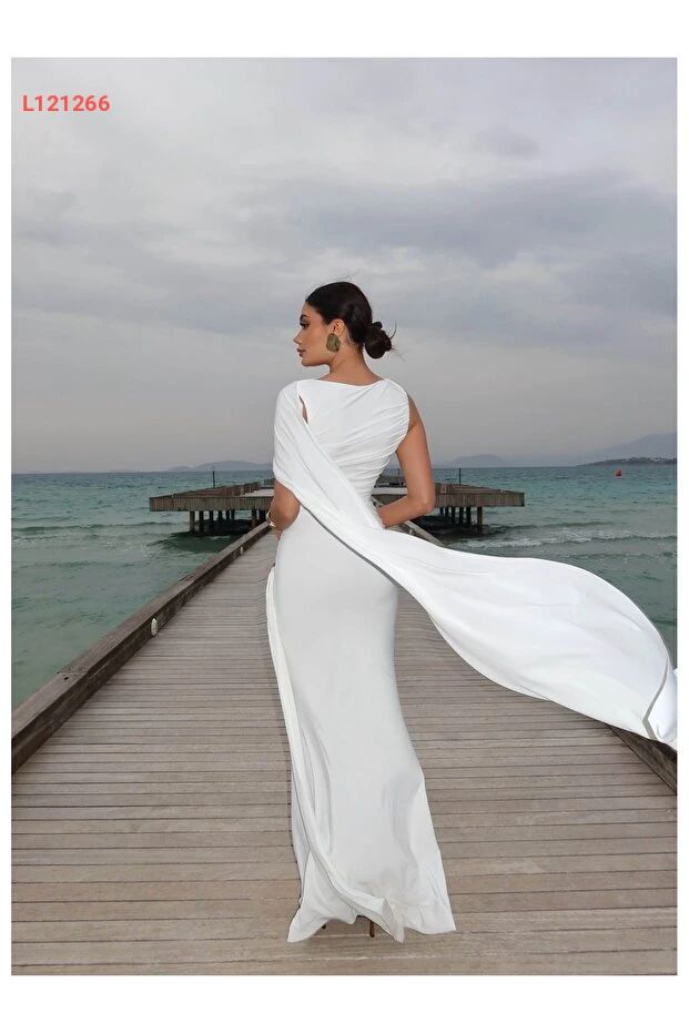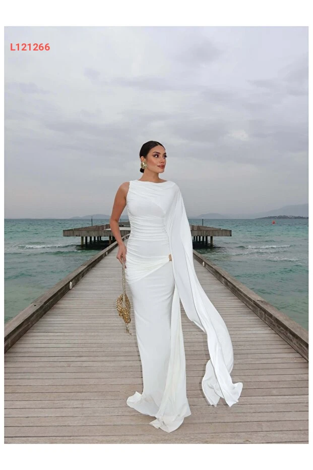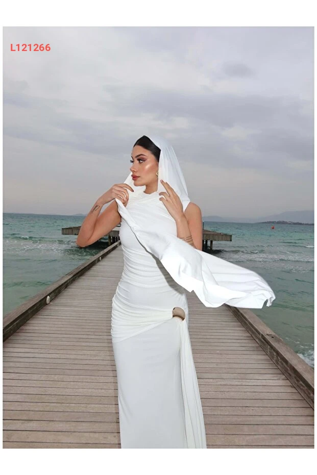 فستان طويل مزين بالتفاصيل الدرامية - مجموعة ESRAHELVACI