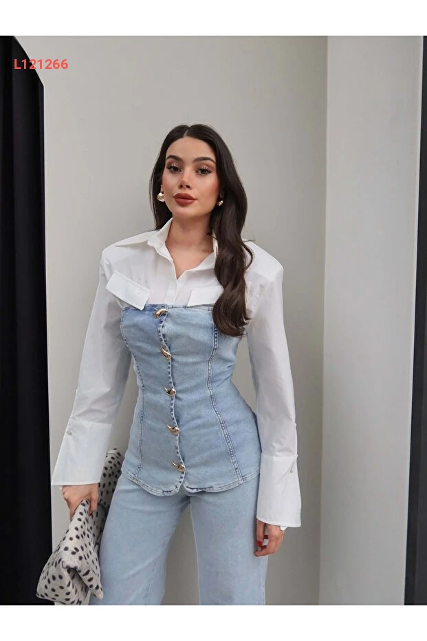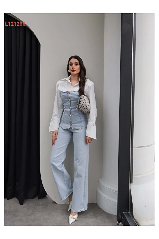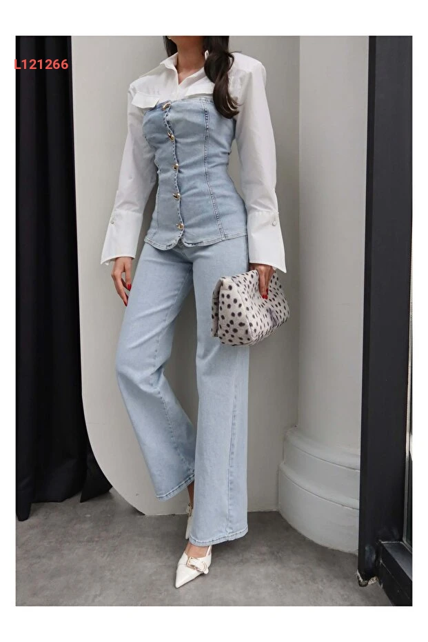 اكتشف أناقة وأسلوب لا يُضاهى مع مجموعة ESRAHELVACI Gold Düğmeli Straplez! تصميمها العصري مع الأزرار الذهبية يضيف لمسة من الفخامة، بينما يضمن لكِ الكورسيه الخالي من الأكتاف راحة تامة وحرية الحركة. تألقي في كل مناسبة مع هذا الزي المذهل الذي يُبرز أنوثتك بأفضل صورة.