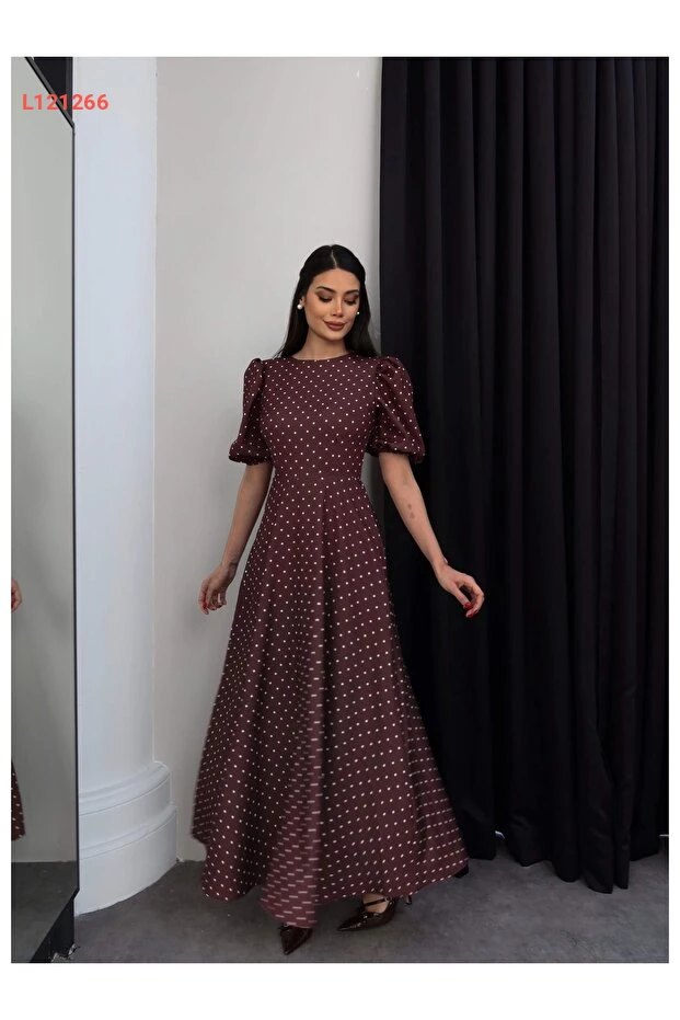 استمتعي بأناقتك مع فستان ESRAHELVACI المصنوع من قماش بولو النقاط! يتميز بأكمام على شكل بالون تضفي لمسة عصرية، بينما يضمن التصميم الماكسي حرية الحركة وراحة القلب. تألقي بإطلالة جذابة تناسب جميع المناسبات مع هذا الفستان الفريد!