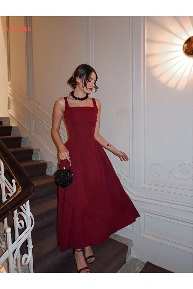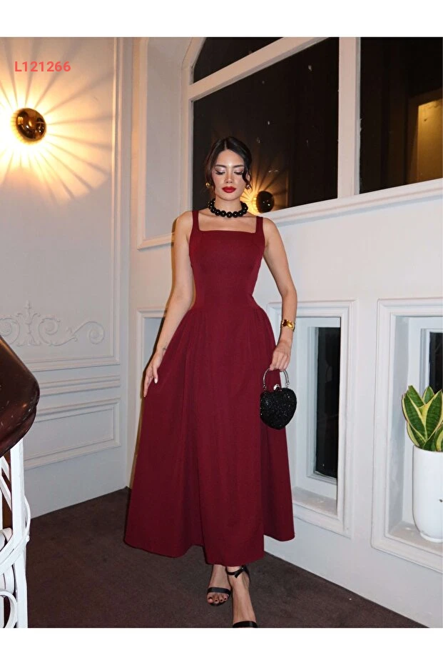 فستان ميدي بكتف عريض وقَصّة مربعة من إسراء هيلفاجي