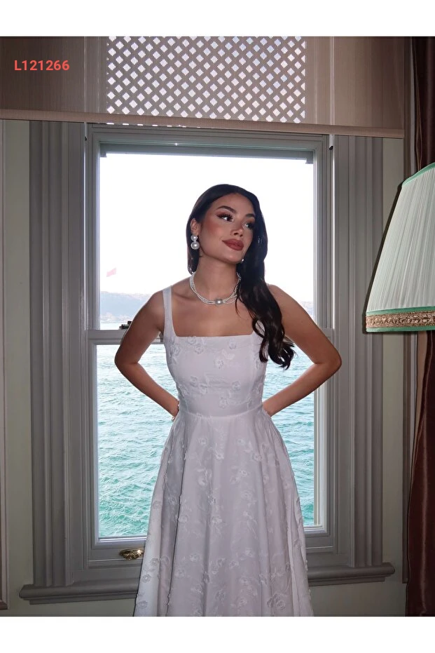 تألقي بأناقة مع فستان ESRAHELVACI المزود بحمالات وزينة الأزهار المطرزة، الذي يجمع بين الراحة والفخامة في تصميم واحد. مصنوع من أقمشة ناعمة ليمنحك حرية الحركة ويبرز أنوثتك، مثالي للمناسبات الصيفية أو الأيام المشمسة. ارتديه مع إكسسوارات بسيطة لتحصلي على إطلالة ساحرة وجذابة.