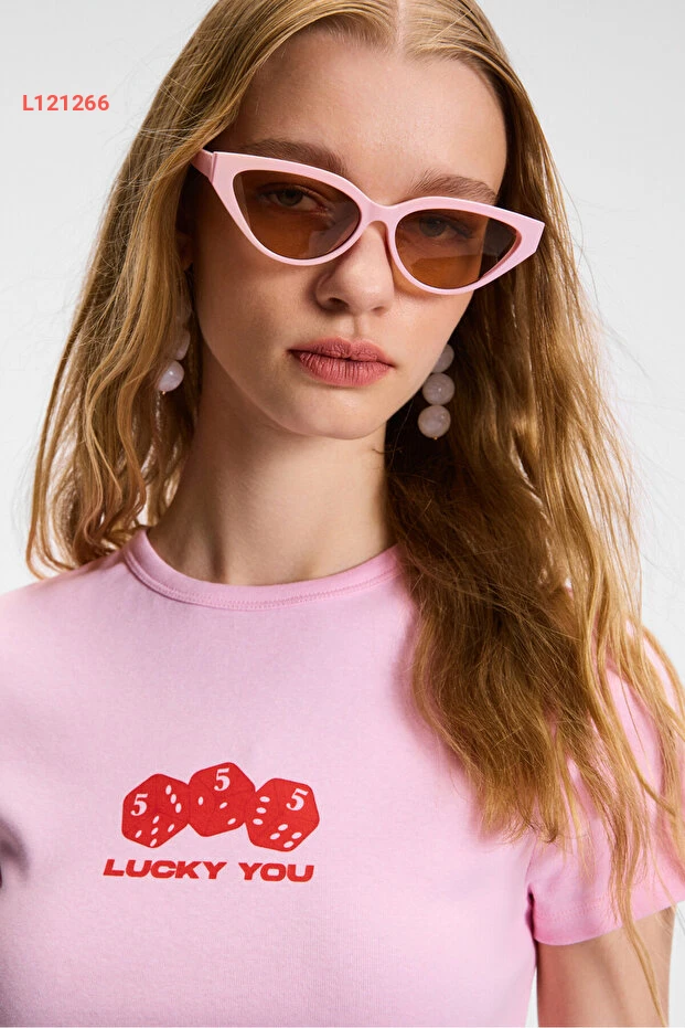 تي شيرت نسائي قصير الأكمام بتصميم مطبوع من ETHIQUET NOVELLE بلون وردي