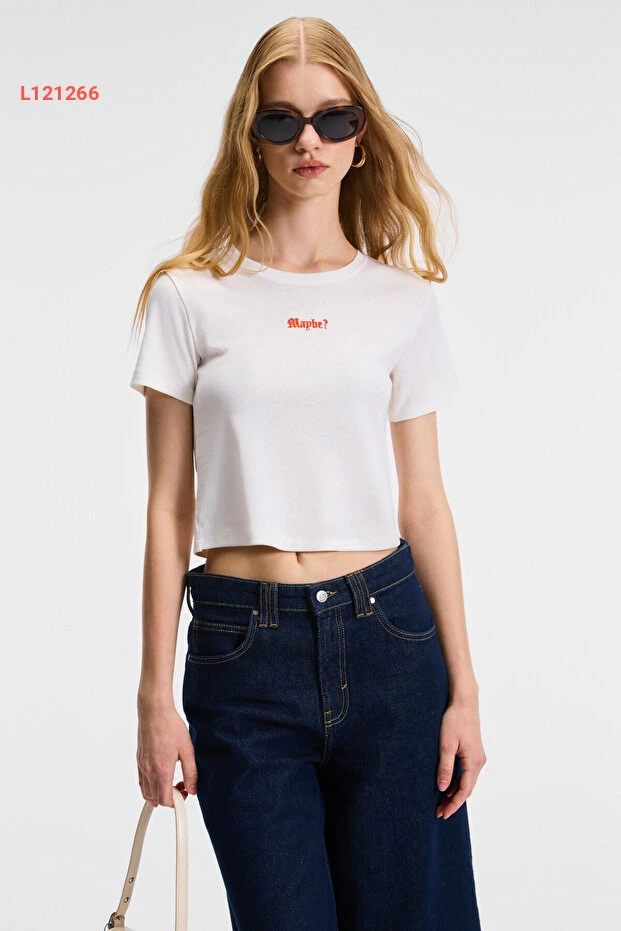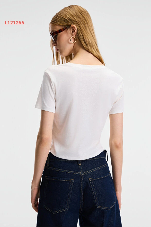 تي شيرت كروب بيضاء بقصة مزينة بتطريز - إيثيكت زيراي