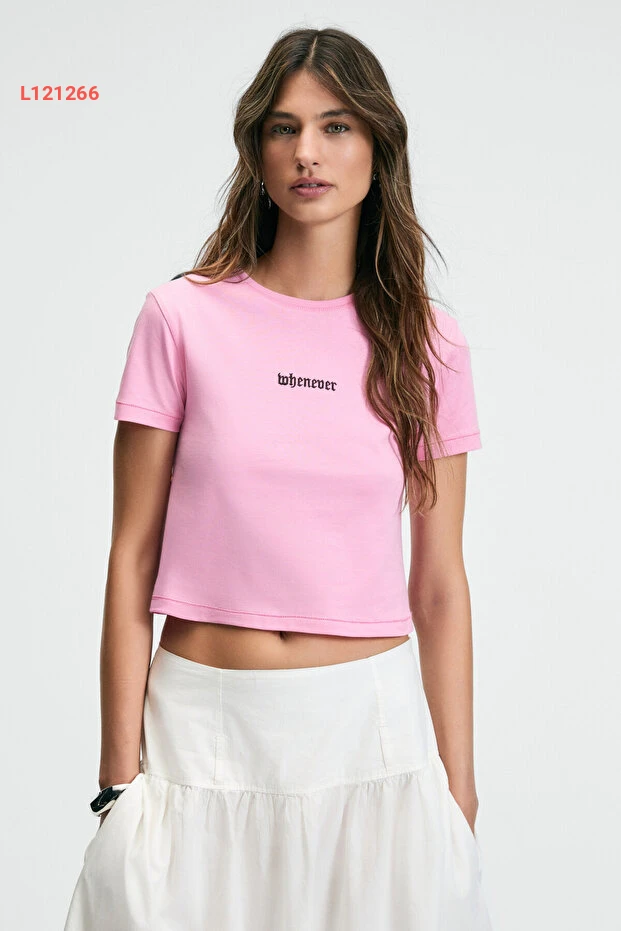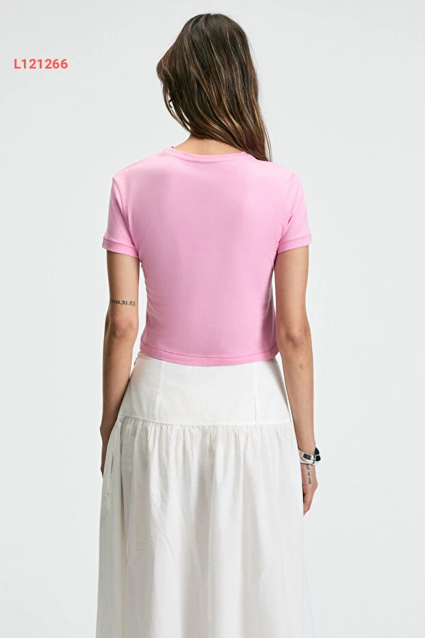 تي شيرت قصير الأكمام بقلنسوة وردي بتفاصيل تطريز نسائي من إيذيكو زيرايا