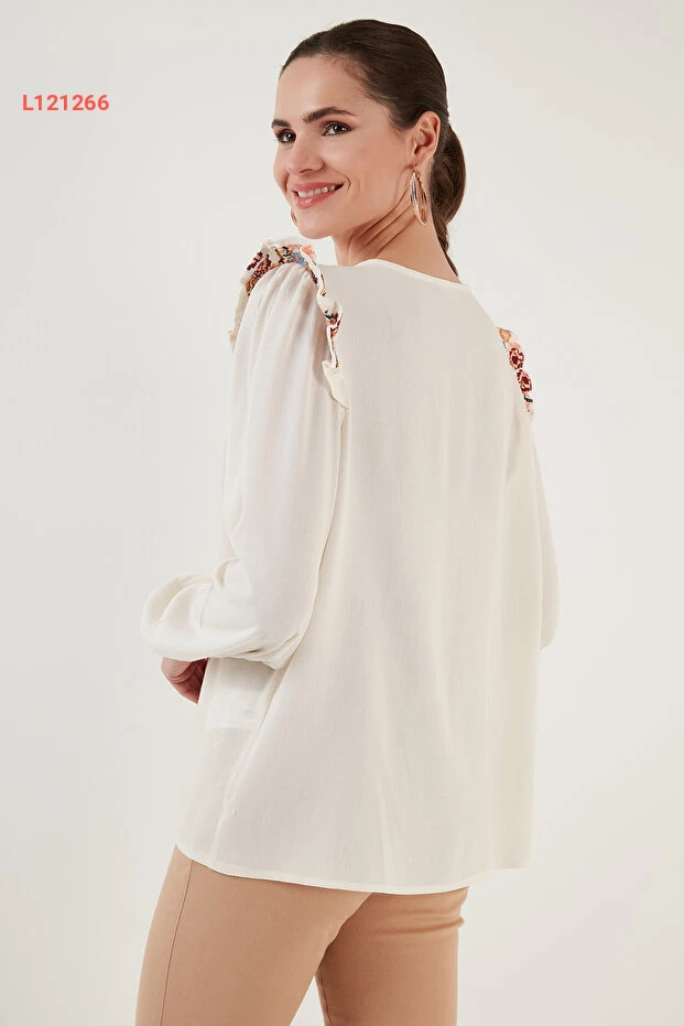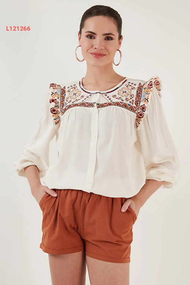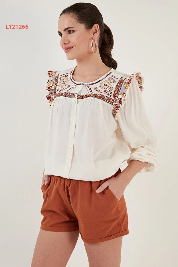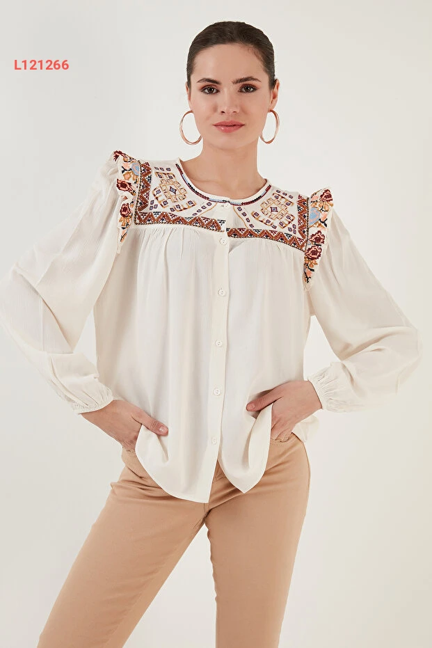 استمتع بإطلالة أنيقة وعصرية مع قميص "Lela" المصنوع من قماش الشيل الفاخر، الذي يجمع بين الراحة والتصميم الفريد بتفاصيله الجذابة على الأكمام. يتميز هذا القميص بنمط إتني مبتكر يضفي لمسة من التميز على مظهرك، مما يجعله الخيار المثالي للإطلالات اليومية أو المناسبات الخاصة.