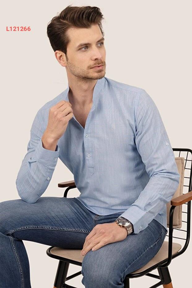 ارتقِ بأناقتك مع قميص "Etikmen" الأزرق بحلقته المميزة، المصنوع من قماش الكتان الفاخر. يأتي بتصميم ثلاثي الأزرار الذي يجمع بين الراحة والأناقة، مما يجعله الخيار المثالي للمناسبات الكاجوال والرسمية على حد سواء. دع أناقتك تأسر الأنظار مع هذا القميص الرائع!