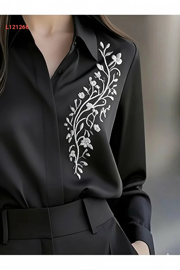 قميص نسائي من ساتان مع تطريز وزر مخفي - موديل عصري من إيتوس